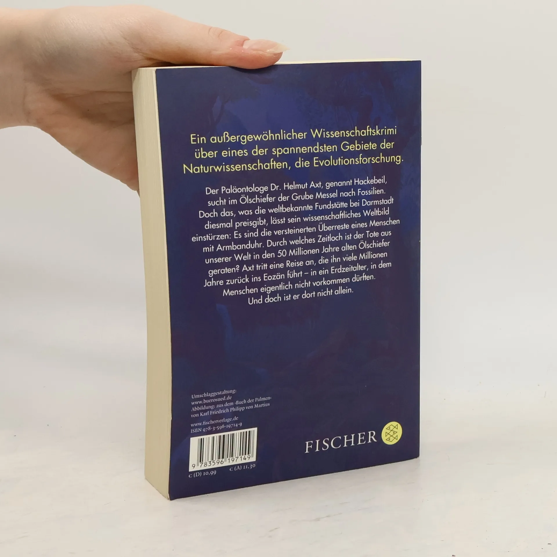 Der Paläontologe Dr. Helmut Axt, genannt Hackebeil, sucht im Ölschiefer der Grube Messel nach Fossilien. Doch das, was die weltbekannte Fundstätte bei Darmstadt diesmal preisgibt, lässt sein wissenschaftliches Weltbild einstürzen: Es sind die versteinerten Überreste eines Menschen mit Armbanduhr. Durch welches Zeitloch ist der Tote aus unserer Welt in den 50 Millionen Jahre alten Öschiefer geraten? Axt tritt eine Reise an, die ihn viele Millionen Jahre zurück ins Eozän führt – in ein Erdzeitalter, in dem Menschen eigentlich nicht vorkommen dürften. Und doch ist er dort nicht allein. Ein außergewöhnlicher Wissenschaftskrimi über eines der spannendsten Gebiete der Naturwissenschaften, die Evolutionsforschung.