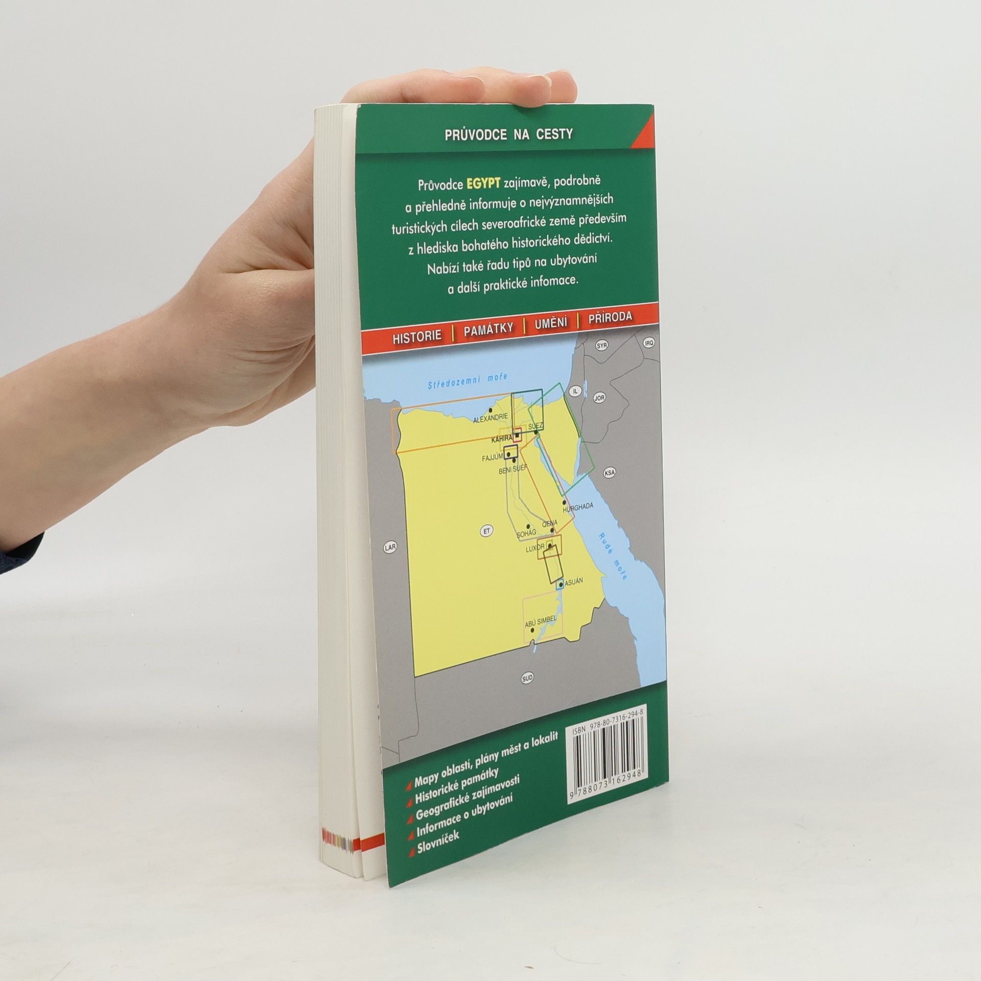Detaily Průvodce Egypt informuje o nejvýznamnějších turistických cílech této severoafrické země především z hlediska bohatého historického dědictví. Kromě pyramid, sfingy, starých chrámů a jiných archeologických památek vás kniha pozve také k návštěvě Káhiry, pobřeží Rudého moře nebo hornatého poloostrova Sinaj. K dispozici jsou podrobné turistické informace včetně tipů na ubytování či sportovní a kulturní vyžití. Průvodce obsahuje rovněž mapy oblastí, plány vybraných měst, slovníček místních pojmů a rejstřík. Atmosféru země přibližuje množství barevných fotografií. (podrobné a přehledné informace o historii, kultuře, přírodě a turistickém zázemí Egypta)