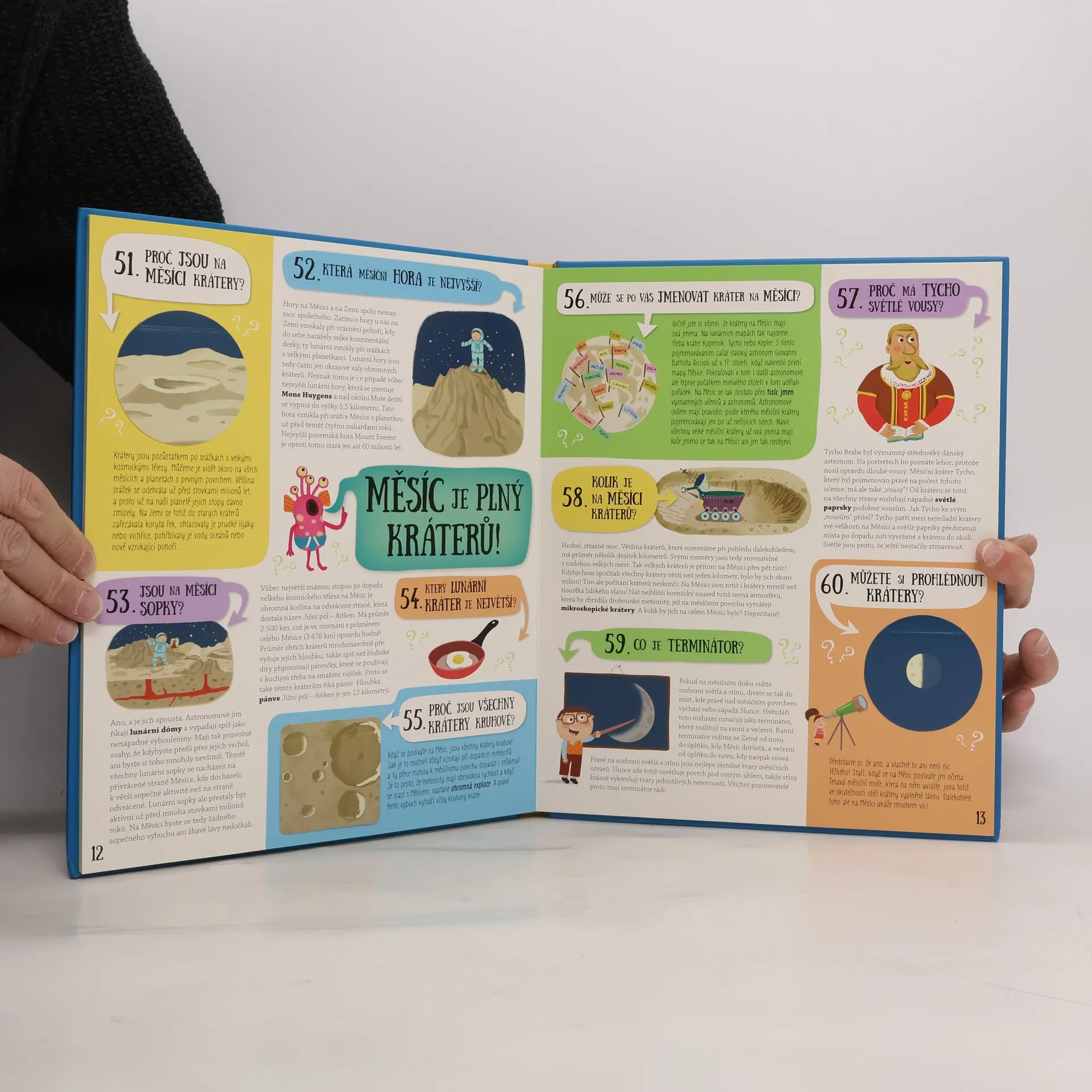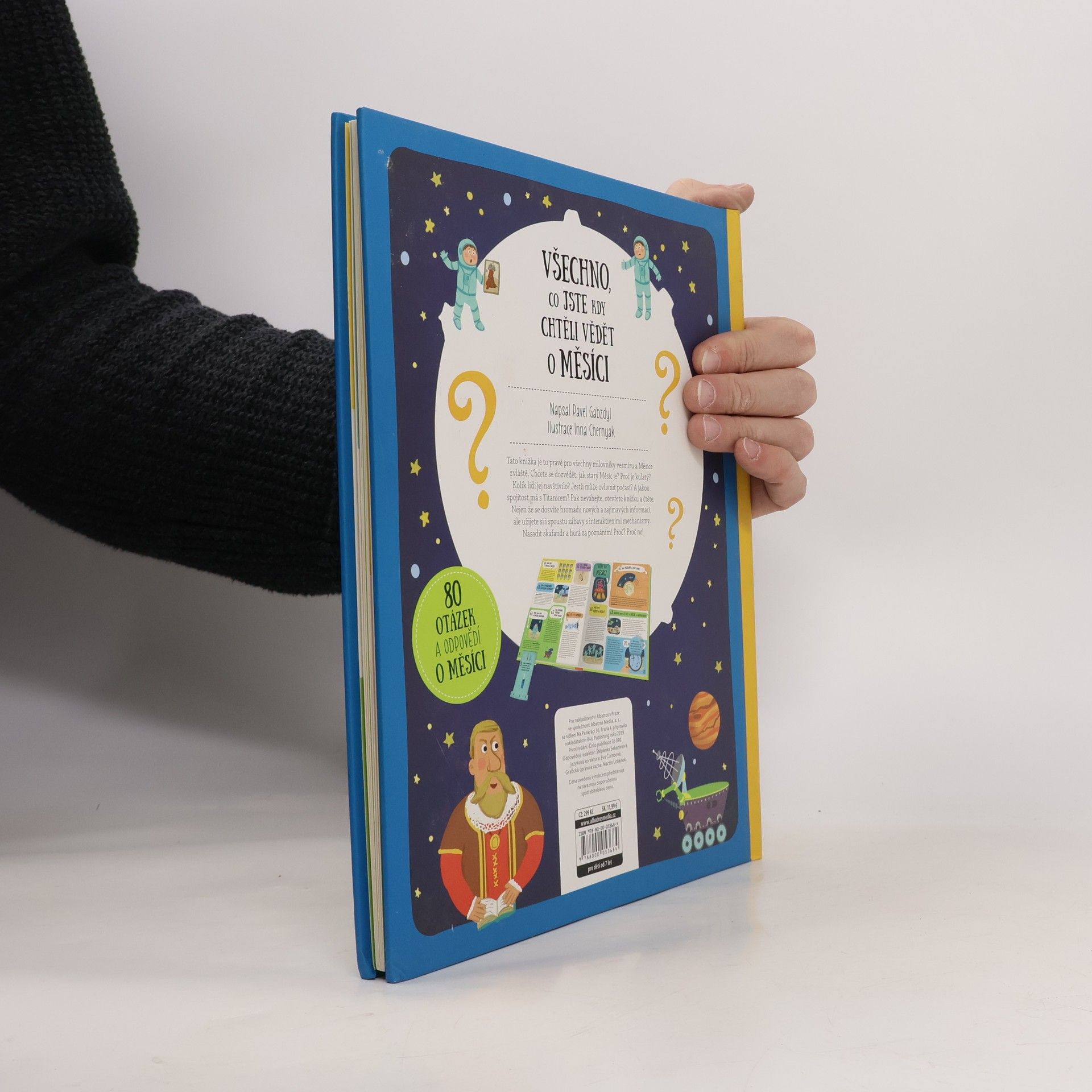 "80 otázek a odpovědí pro malé i velké milovníky vesmíru" Jak starý je Měsíc? Proč je kulatý? Kolik lidí už ho navštívilo? A jakou spojitost má se slavným Titanicem? Objevte odpovědi na všechny všetečné otázky o vesmíru a především o Měsíci. Dozvíte se nejen hromadu nových a zajímavých informací, ale užijete si i spoustu zábavy s interaktivními mechanismy a hravými ilustracemi. Tak nasadit skafandr a hurá za poznáním!