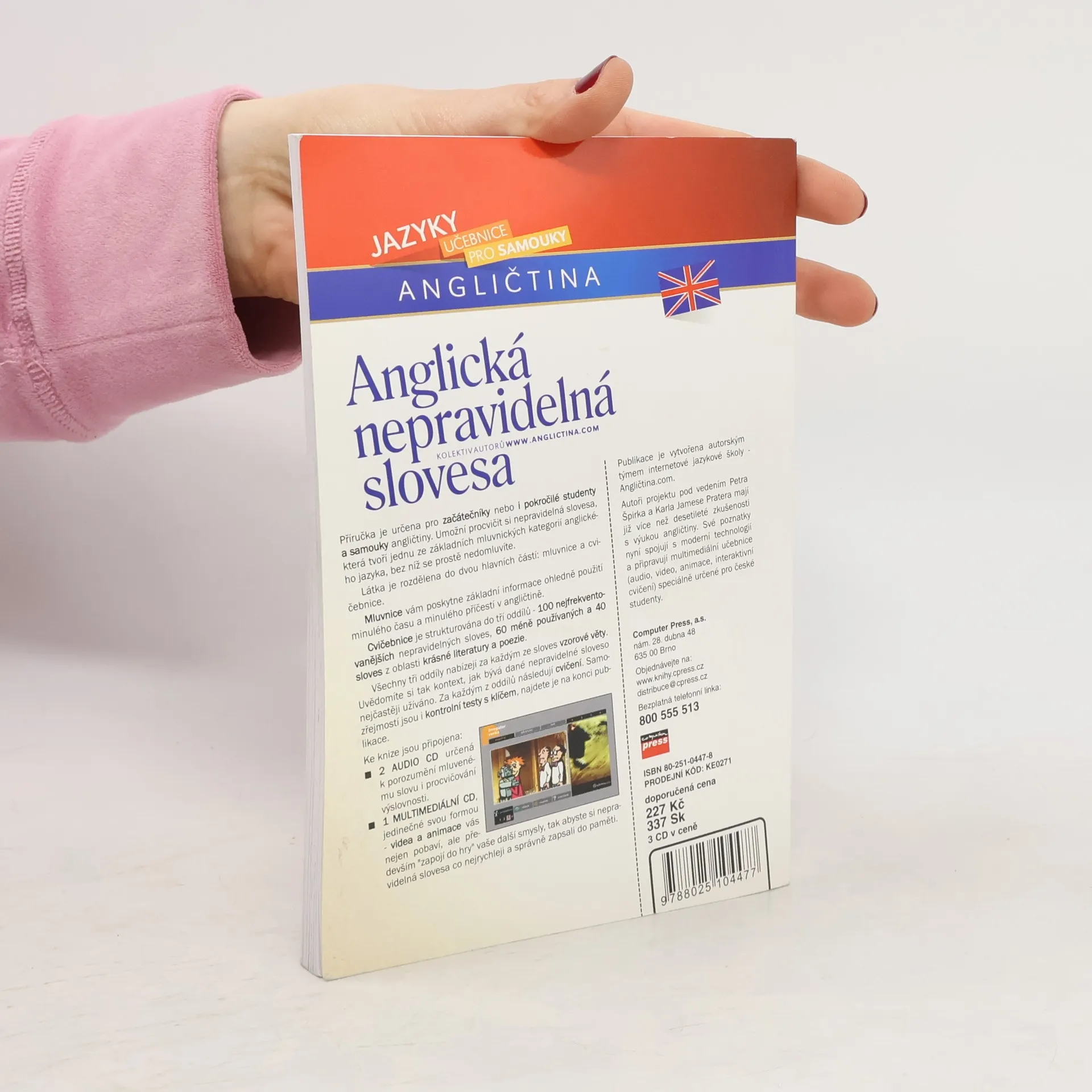 Příručka je určena pro začátečníky nebo i pokročilé studenty a samouky angličtiny. Umožní procvičit si nepravidelná slovesa, která tvoří jednu ze základních mluvnických kategorií anglického jazyka a bez kterých se prostě nedomluvíte. Látka je rozdělena do dvou hlavních částí: mluvnice a cvičebnice. Mluvnice vám poskytne základní informace ohledně použití minulého času a minulého příčestí v angličtině. Cvičebnice je strukturována do tří oddílů - 100 nejfrekventovanějších nepravidelných sloves, 60 méně používaných a 40 sloves z oblasti krásné literatury a poezie. Všechny tři oddíly nabízejí za každým ze sloves vzorové věty. Uvědomíte si tak kontext, jak bývá dané nepravidelné sloveso nejčastěji užíváno. Za každým z oddílů následují cvičení. Samozřejmostí jsou i kontrolní testy s klíčem, najdete je na konci publikace. Ke knize jsou připojena: Tak abyste si nepravidelná slovesa co nejrychleji a správně zapsali do paměti.
