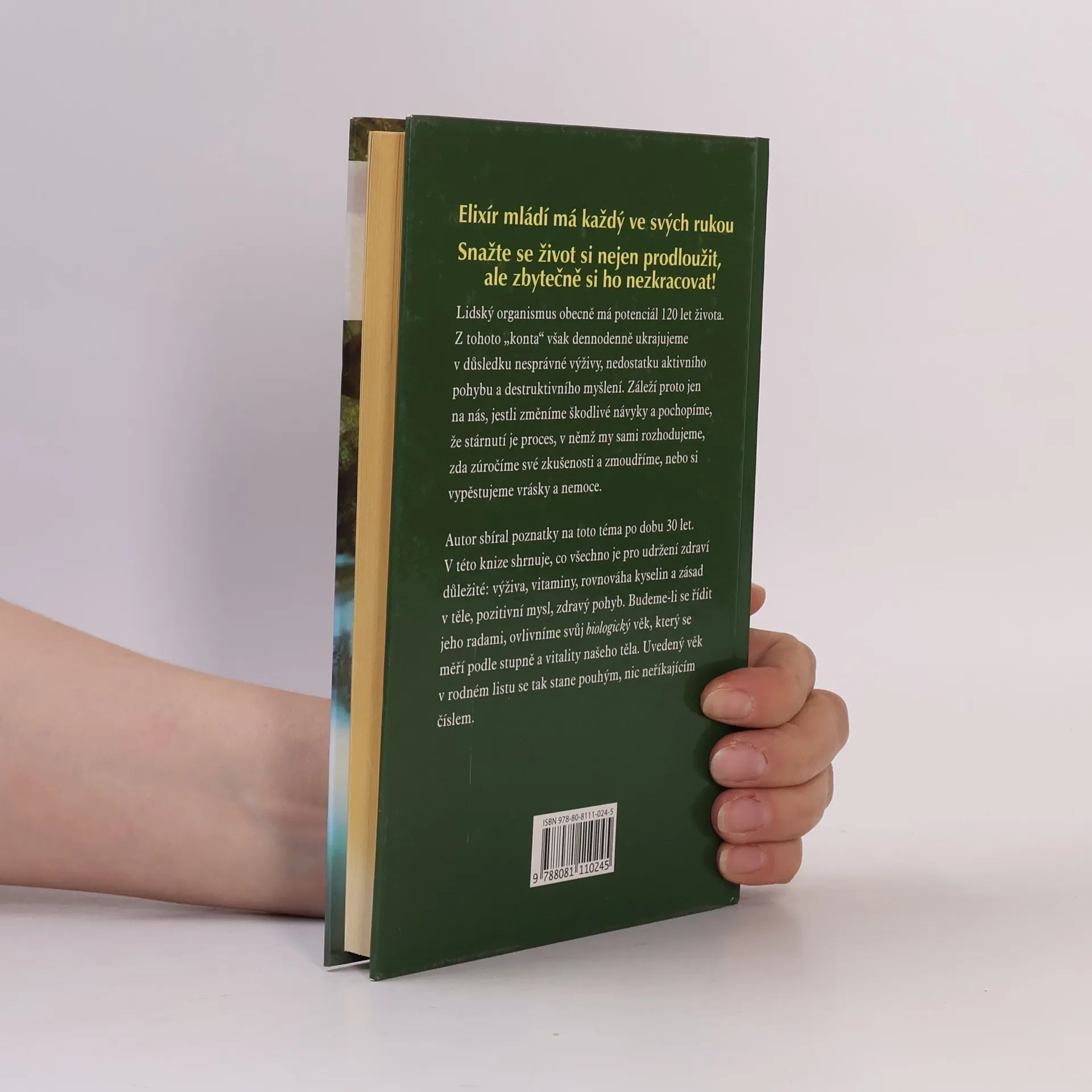 Elixír mládí má každý ve svých rukou. Nesnažte se život prodloužit, nýbrž si ho zbytečně nezkracovat! Lidský organismus má potenciál 120 let života. Z tohota "konta" však dennodenně ukrajujeme v důsledku nesprávné výživy, nedostatku aktivního pohybu a destruktivního myšlení. Záleží proto jen na nás, jestli změníme škodlivé návyky a pochopíme, že stárnutí je proces, v němž my sami rozhodujeme, zda zúročíme své zkušenosti a zmoudříme, nebo si vypěstujeme vrásky a nemoci. Autor sbíral poznatky na toto téma po dobu 30 let. V této knize shrnuje, co všechno je pro udržení zdraví důležité: výživa, vitaminy, rovnováha kyselin a zásad v těle, pozitivní mysl, zdravý pohyb. Budeme-li se řídit jeho radami, ovlivníme svůj biologický věk, který se měří podle stupně a vitality našeho těla. Uvedený věk v rodném listu se tak stane pouhým, nic neříkajícím číslem. Nepostradatelný rádce pro ty, kdo si chtějí zachovat zdraví a být fit až do vysokého věku.