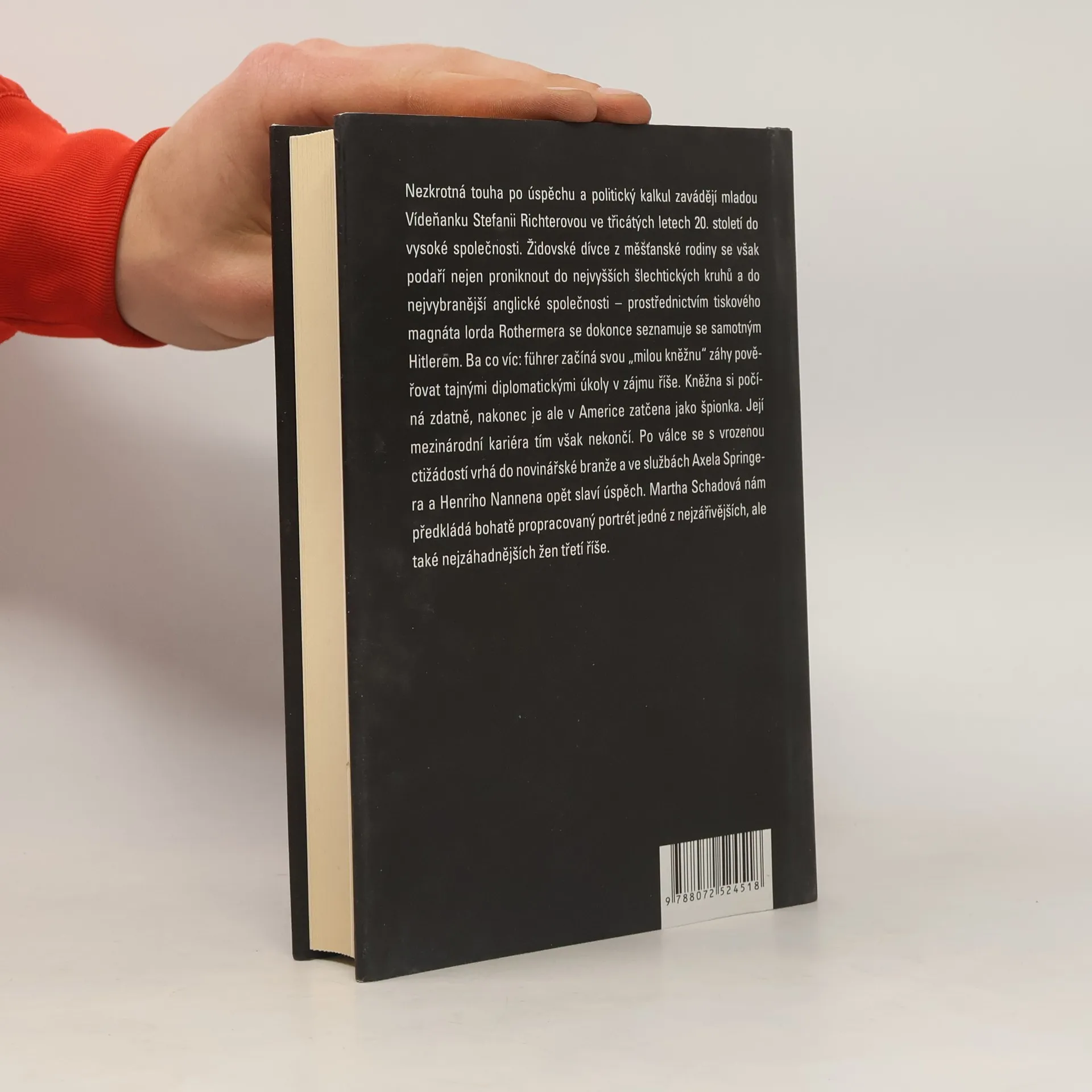 Když se v roce 1891 narodilo ve Vídni židovské děvčátko jménem Stefanie Richterová, nemohl nikdo tušit, že se jednoho dne bude stýkat s nejmocnějšími tohoto světa. Svatbou s knížetem Bedřichem Františkem z Hohenlohe-Waldenburg-Schillingsfürstu získala šlechtický titul a brzy poté započala její mezinárodní kariéra. Prostřednictvím tiskového magnáta lorda Rothermera se dokonce seznamuje se samotným Hitlerem. Ba co víc: führer začíná svou „milou kněžnu“ záhy pověřovat tajnými diplomatickými úkoly v zájmu říše. Kněžna si počíná zdatně, nakonec je ale v Americe zatčena jako špionka. Její mezinárodní kariéra tím však nekončí. Po válce se s vrozenou ctižádostí vrhá do novinářské branže a ve službách Axela Springera a Henriho Nannena opět slaví úspěch. Martha Schadová nám předkládá bohatě propracovaný portrét jedné z nejzářivějších, ale také nejzáhadnějších žen třetí říše.