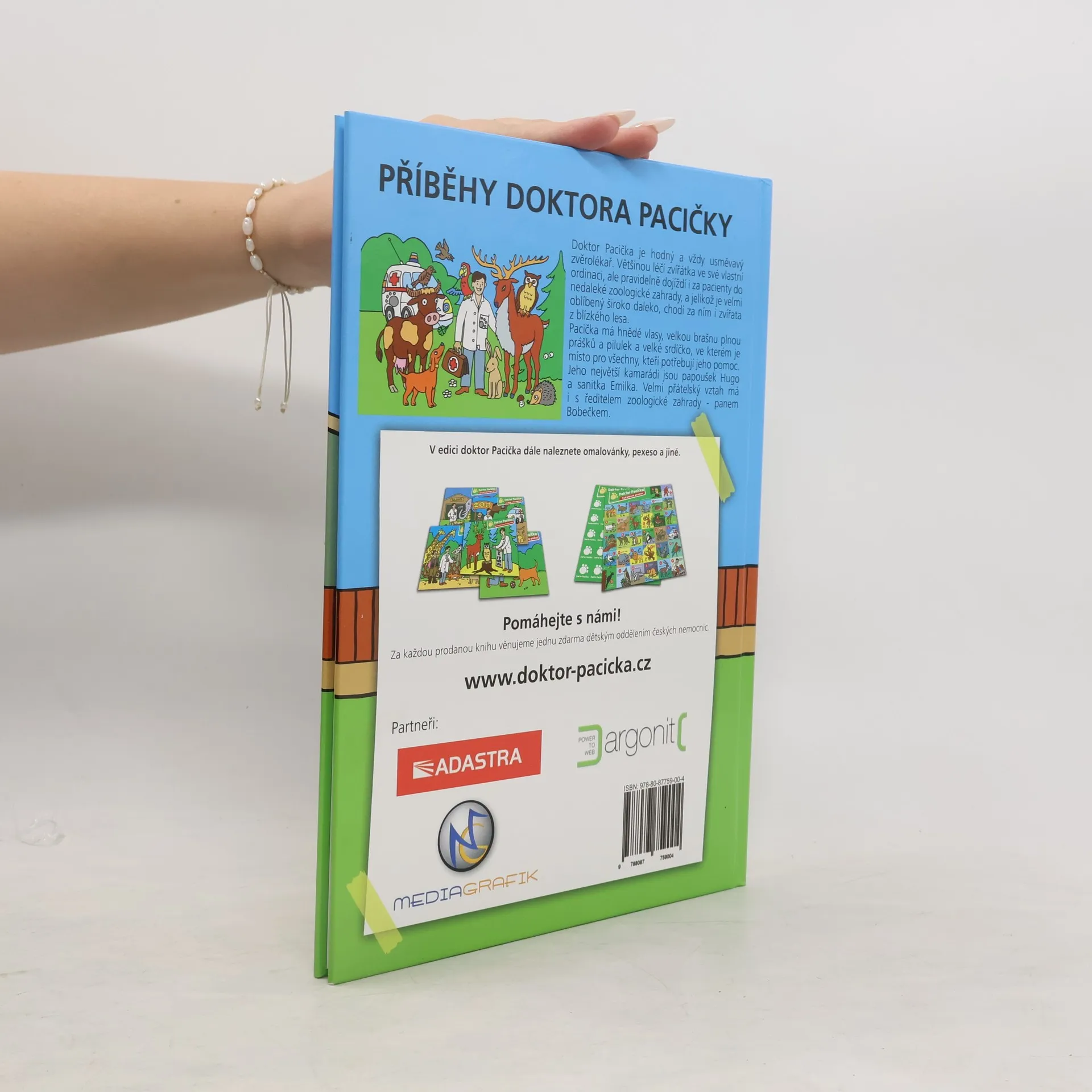 Doktor Pacička je hodný a vždy usměvavý zvěrolékař. Většinou léčí zvířátka ve své vlastní ordinaci, ale pravidelně dojíždí i za pacienty do nedaleké Zoologické zahrady, a jelikož je velmi oblíbený široko daleko, má vždy plnou čekárnu. Občas musí dokonce za nemocnými do blízkého lesa. Pacička má hnědé vlasy, velkou brašnu plnou prášků a pilulek a velké srdíčko, ve kterém je místo pro všechny, kteří potřebují jeho pomoc. Jeho největší kamarádi jsou papoušek Hugo a sanitka Emilka. Velmi přátelský vztah má i s ředitelem Zoologické zahrady - panem Bobečkem. Lubor Vokrouhlický vymyslel doktora Pacičku původně pro svoji dvouletou dceru. Postupem času vyprávěl příběhy dalším a dalším dětem, a jelikož se to vždy setkalo s nadšením a úsměvy, vyrobil i dvoje omalovánky, které zdarma distribuuje do nemocnic a dětských domovů. Stejně tak je i část nákladu této knihy určena pro dětská oddělení nemocnic. Aktuálně existuje asi deset krátkých příběhů zvířecího doktora a jeho barevného kamaráda Huga.