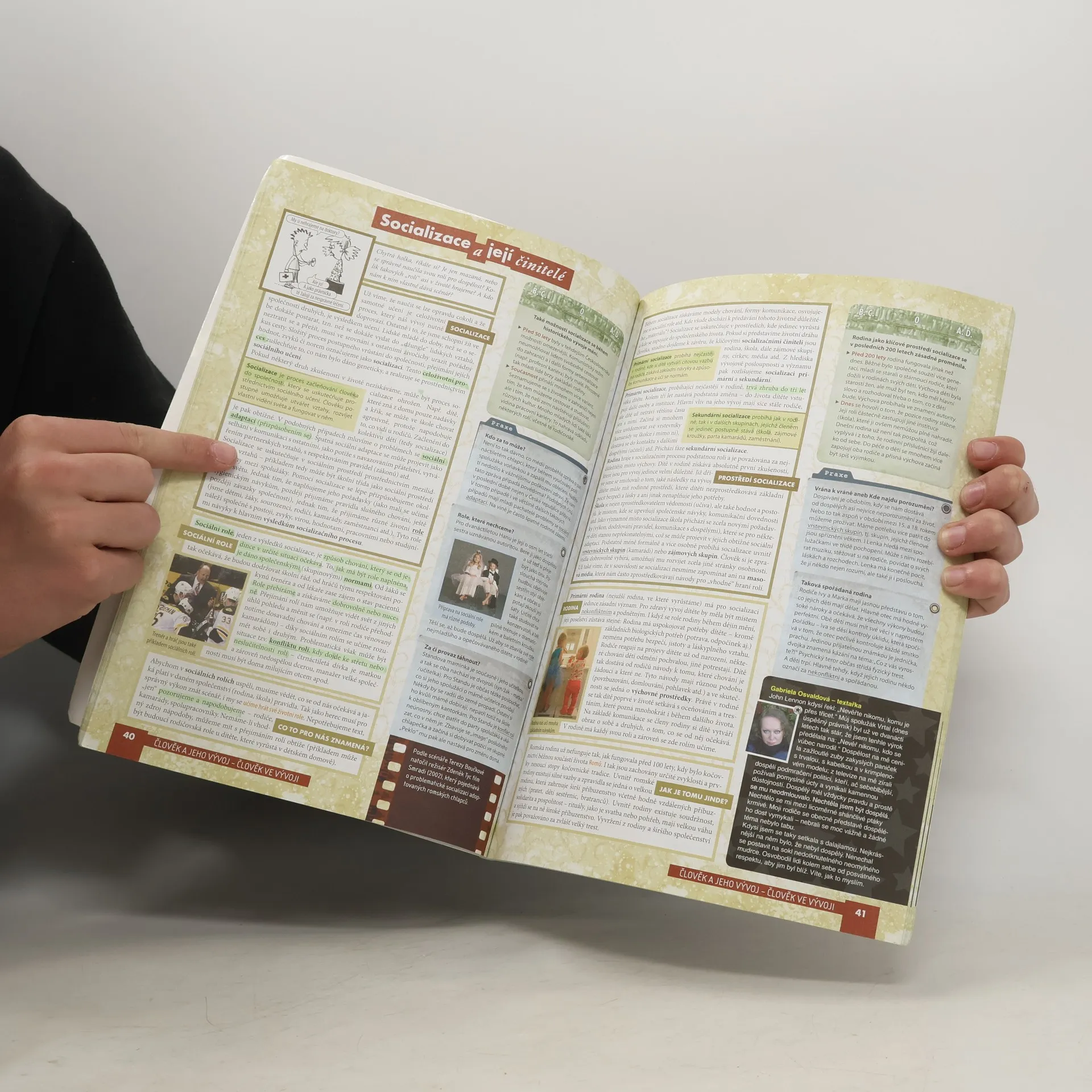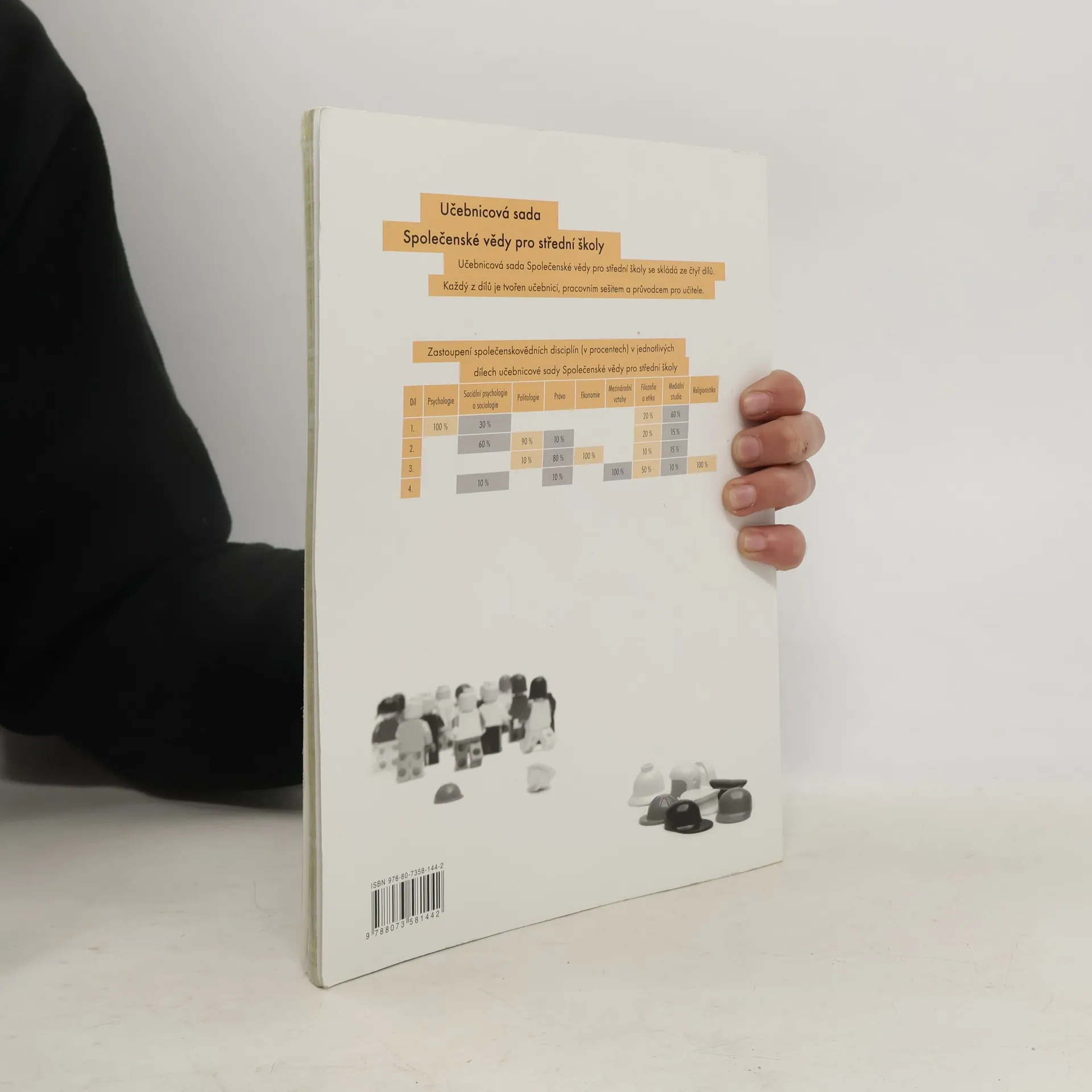 Učebnice přistupuje novým způsobem k problematice společenských věd, představujíc učivo s ohledem na každodenní souvislosti a požadavky současných studentů. Texty jsou zpracovány a kontrolovány vysokoškolskými odborníky, což zajišťuje jejich spolehlivost a faktickou přesnost. Je zpracována podle požadavků RVP pro gymnaziální a střední odborné vzdělávání, což umožňuje její využití v obou typech škol. Naplňuje legislativní požadavky jak po stránce obsahu, tak rozvíjením klíčových kompetencí žáků, zohledněním mezipředmětových vztahů a průběžným zařazováním průřezových témat. Učebnice je rozdělena do čtyř tematických celků, které se zaměřují na klíčové výkladové problémy: poznávání skutečnosti, vývoj člověka a vlivy na něj, individuální odlišnost a psychologické základy, a pravidla soužití s druhými. Tyto celky jsou dále děleny na kapitoly a podkapitoly, což odpovídá struktuře pracovního sešitu. Podkapitoly, jako základní jednotky učebnice, jsou buď jednostránkové, nebo dvoustránkové, odpovídající časové dotaci. Učebnice je koncipována tak, aby zajišťovala provázanost jednotlivých podkapitol a zároveň usnadnila odlišení povinného učiva od doplňujících informací.