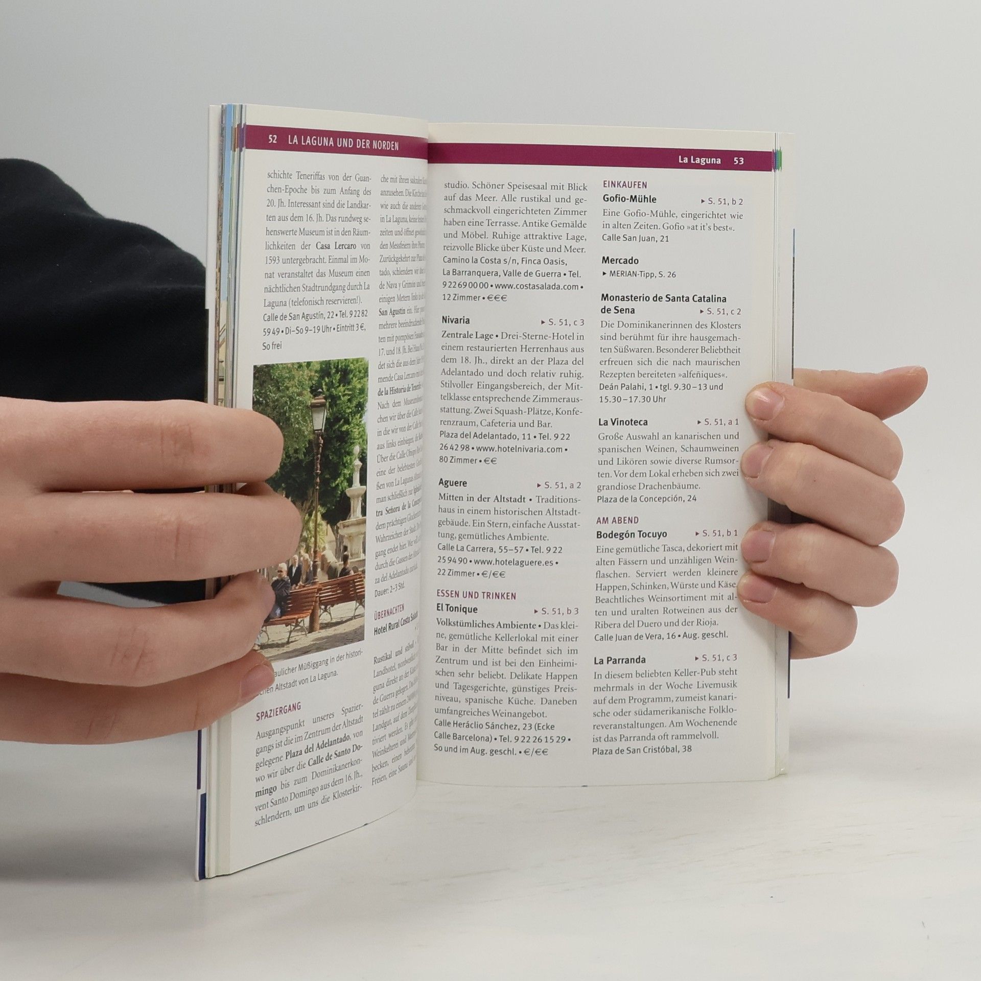 Die größte Kanareninsel empfängt den Besucher strahlend: überreich mit Blumen geschmückt, mit Sonnenschein gesegnet und mit einem wunderbaren Panorama ausgestattet. Vom Parque Nacional del Teide, einer Vulkanlandschaft mit einzigartiger Flora und Fauna, über den spektakulären Karneval in Santa Cruz bis zum höchsten Bergdorf Spaniens - auf Teneriffa gibt es viel zu entdecken. MERIAN live! bietet: - Fundierte Beschreibungen aller wichtigen Orte und Strände sowie Sehenswürdigkeiten und Ausflugsziele - Sorgfältig ausgewählte Hotel- und Restaurantempfehlungen, Ausgeh- und Shoppingadressen sowie Tipps für Familien - Empfehlungen für den umweltbewussten Urlaub im Kapitel grüner reisen - 10 MERIAN-TopTen stellen die Höhepunkte der Insel vor - 10 MERIAN-Tipps führen zu den unbekannten Seiten der Insel - Stadtpläne von Santa Cruz de Tenerife, La Laguna, Puerto de la Cruz und La Orotava zur leichten Orientierung - Doppelter Vorteil: Kartenatlas im Buch und Extra-Karte zum Herausnehmen