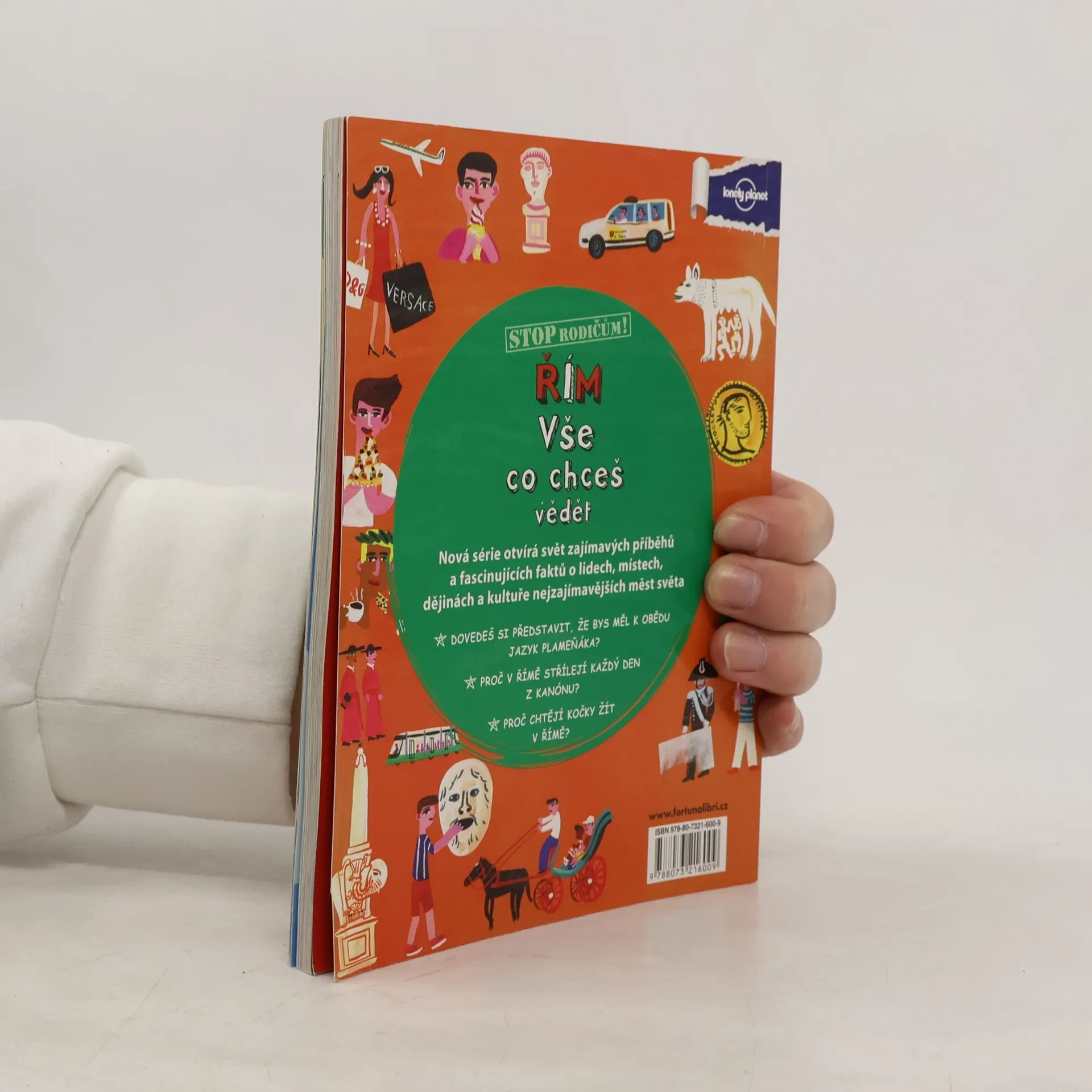Série Stop rodičům! otvírá svět zajímavých příběhů a fascinujících faktů o lidech, místech, dějinách a kultuře nejzajímavějších měst světa. Proč chtějí kočky žít v Římě? Dovedeš si představit, že bys měl k obědu jazyk plameňáka? Proč v Římě střílejí každý den z kanónu? Netradiční a trochu provokativní průvodce pro náctileté.