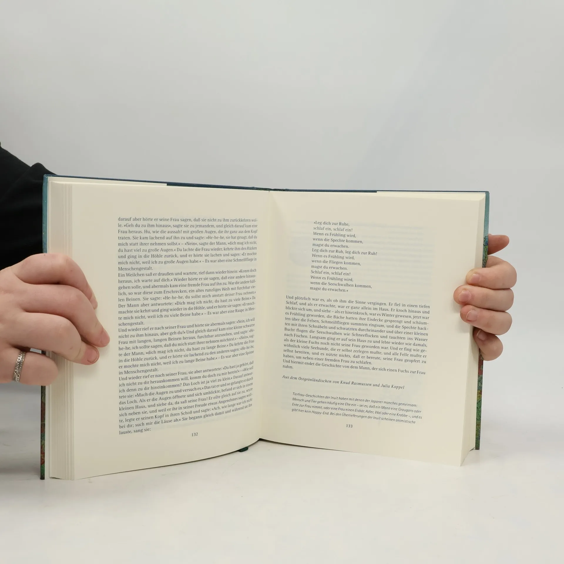 Ulf Diederichs, der die umfangreiche Sammlung 'Der Märchenpalast' (BA 4/93) und das hervorragende Märchen-Lexikon 'Who's who im Märchen' (BA 5/96) veröffentlichte, legt mit diesem Band eine umfangreiche, geschmackvoll ausgestattete, kenntnisreich kommentierte und sehr preiswerte Märchenanthologie vor. Die Illustrationen sind Editionen aus 5 Jahrhunderten entnommen und bieten gleichzeitig einen kleinen Einblick in die Entwicklung der Märchenillustration (sie sind einfarbig dunkelgrün zum blau gedruckten Text abgebildet). Unter den Märchen aus allen Erdteilen - bekannte und wenig bekannte - ist Europa besonders stark vertreten. Empfohlen für alle Bibliotheken (auch für größere Kinder).