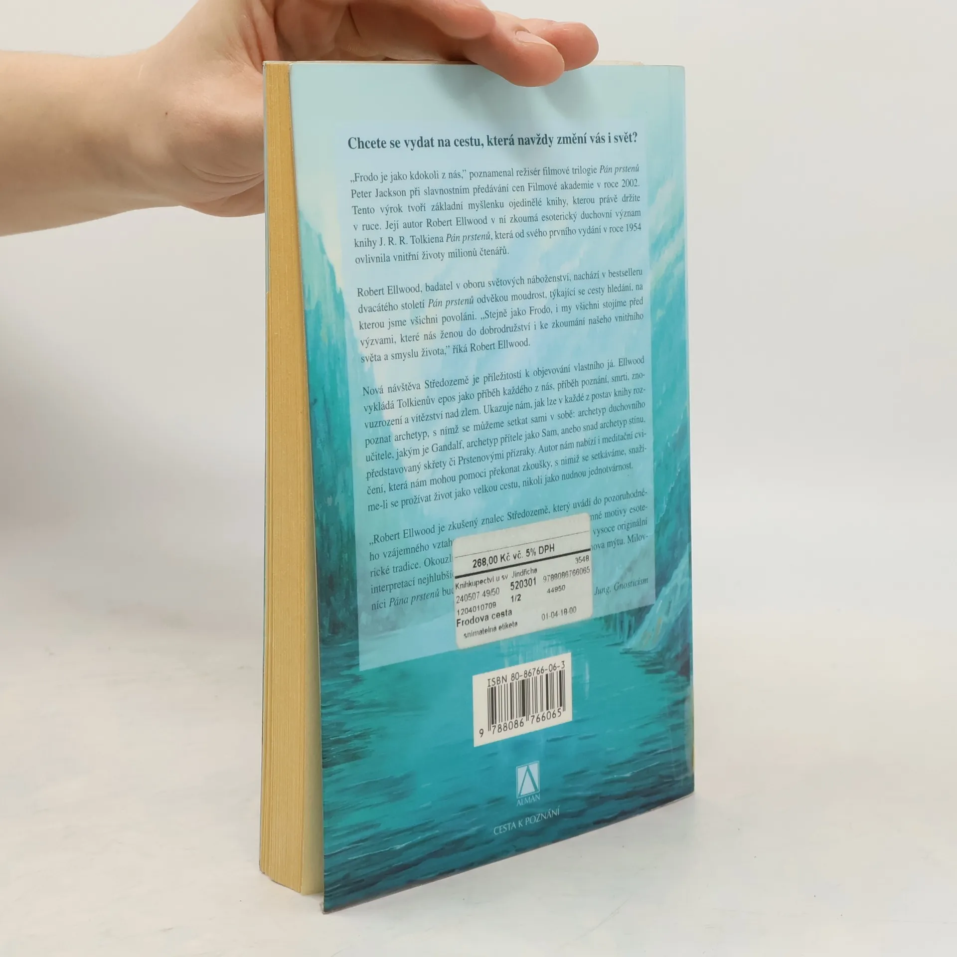 "Frodo je jako kdokoli z nás", poznamenal režisér filmové trilogie Pán prstenů Peter Jackson při slavnostním předávání cen Akademie v roce 2002. Tento výrok tvoří základní myšlenku výjimečné knihy, kterou právě držíte v ruce. Její autor, Robert Ellwood, badatel v oboru světových náboženství, v ní zkoumá esoterický duchovní význam epické fantazie J. R. R. Tolkiena Pán prstenu. Nachází v ní starobylou moudrost o cestě hledání, na niž jsme všichni povoláni. Nová návštěva Středozemě je příležitostí pro osobní objevování. Ellwood vykládá Tolkienův epos jako příběh každého z nás, příběh poznávání, smrti, znovuzrození a vítězství nad zlem. Ukazuje nám, jak lze v každé z postav rozpoznat archetyp, s nímž se můžeme setkat sami v sobě: archetyp duchovního učitele, jakým je Gandalf, archetyp přítele jako Sam, anebo snad i archetyp stínu, představovaný například skřety či Prstenovými přízraky. Tato okouzlující a důvtipná kniha je vysoce originální interpretací nejhlubších vrstev velkého Tolkienova mýtu. Milovníci Pána prstenů budou nadšeni!