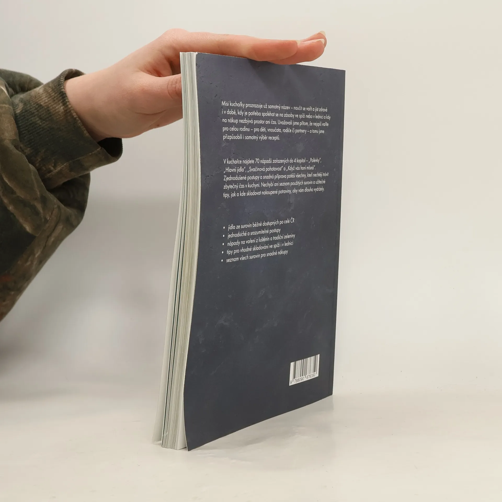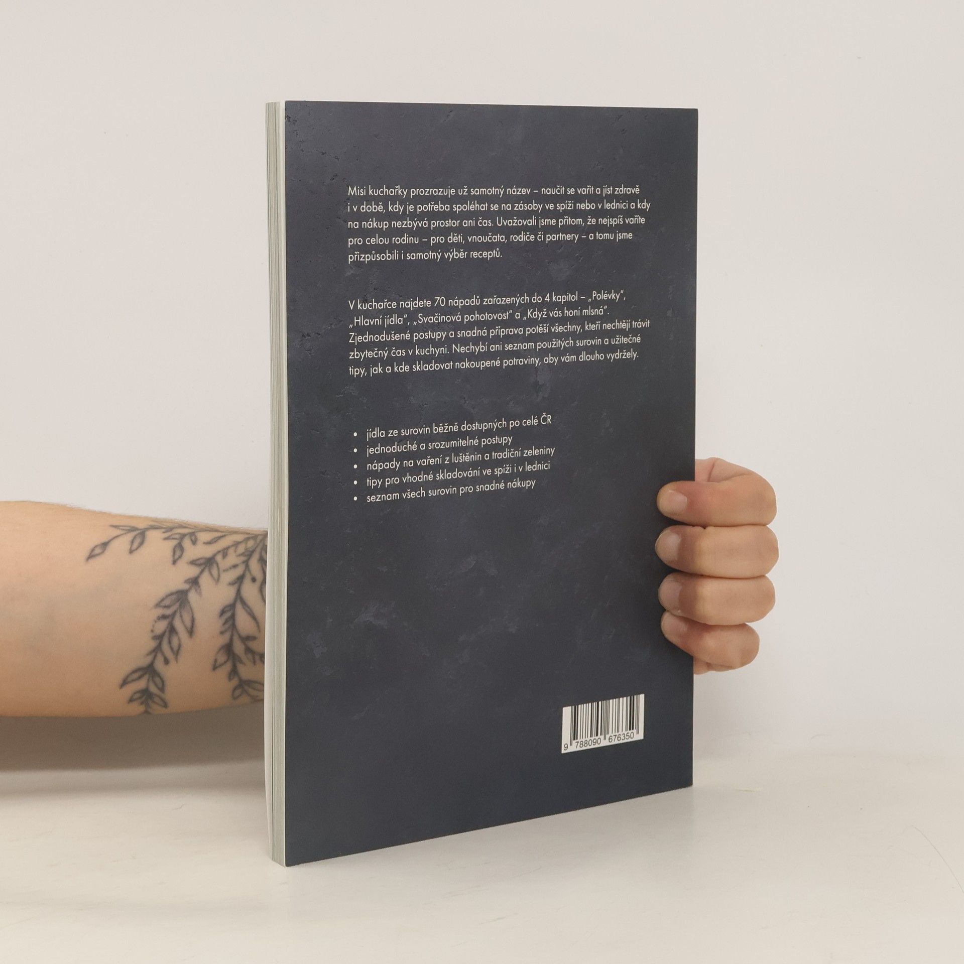 Přišli jste domů z práce a nechce se vám na nákup? Právě vám volal někdo z rodiny, že se neplánovaně staví na sobotní oběd a vy byste jim rádi uvařili domácí stravu? Mise této kuchařky je jasná – naučit se vařit a jíst zdravě i v době, kdy je potřeba spoléhat se na zásoby ve spíži nebo lednici a na nákup prostě není prostor ani čas. Dali jsme dohromady 70 nápadů na opravdová jídla, která v kuchyni připravíte během chvíle a při vaření vám můžou pomáhat i děti. V kuchařce najdete 4 kategorie – polévky, hlavní jídla, svačinovou pohotovost a recepty pro chvíle, kdy vás honí mlsná. Tentokrát jsme si posvítili na luštěniny, zdravější varianty dětských jídel, ryby, maso a také lehčí bezmasé varianty tradičních receptů. Kromě toho vás naučíme upéct nehnětený špaldový chléb, bulky k snídani nebo vyrobit kakaovo-tvarohový dezert ze 4 surovin.