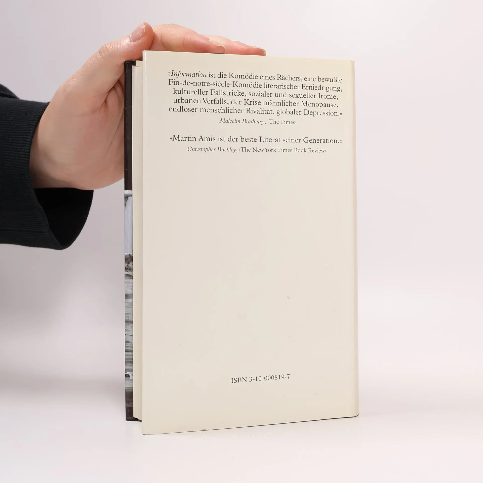 Richard Tull muß Rache nehmen. Dafür, daß "sein ältester und blödester Freund", der Romanschreiber Gwyn Barry, mit seinen drittklassigen Erzeugnissen zum Publikums- und Medienliebling avanciert ist, während er selbst für seine Romane nicht einmal mehr einen Verleger findet. "Information" ist eine Männergeschichte und eine bitterböse Satire auf den Literaturbetrieb... "Doch vor allem ist es eine Komödie der entfesselten Leidenschaften und eine Komödie der Erniedrigung." (The Times.)