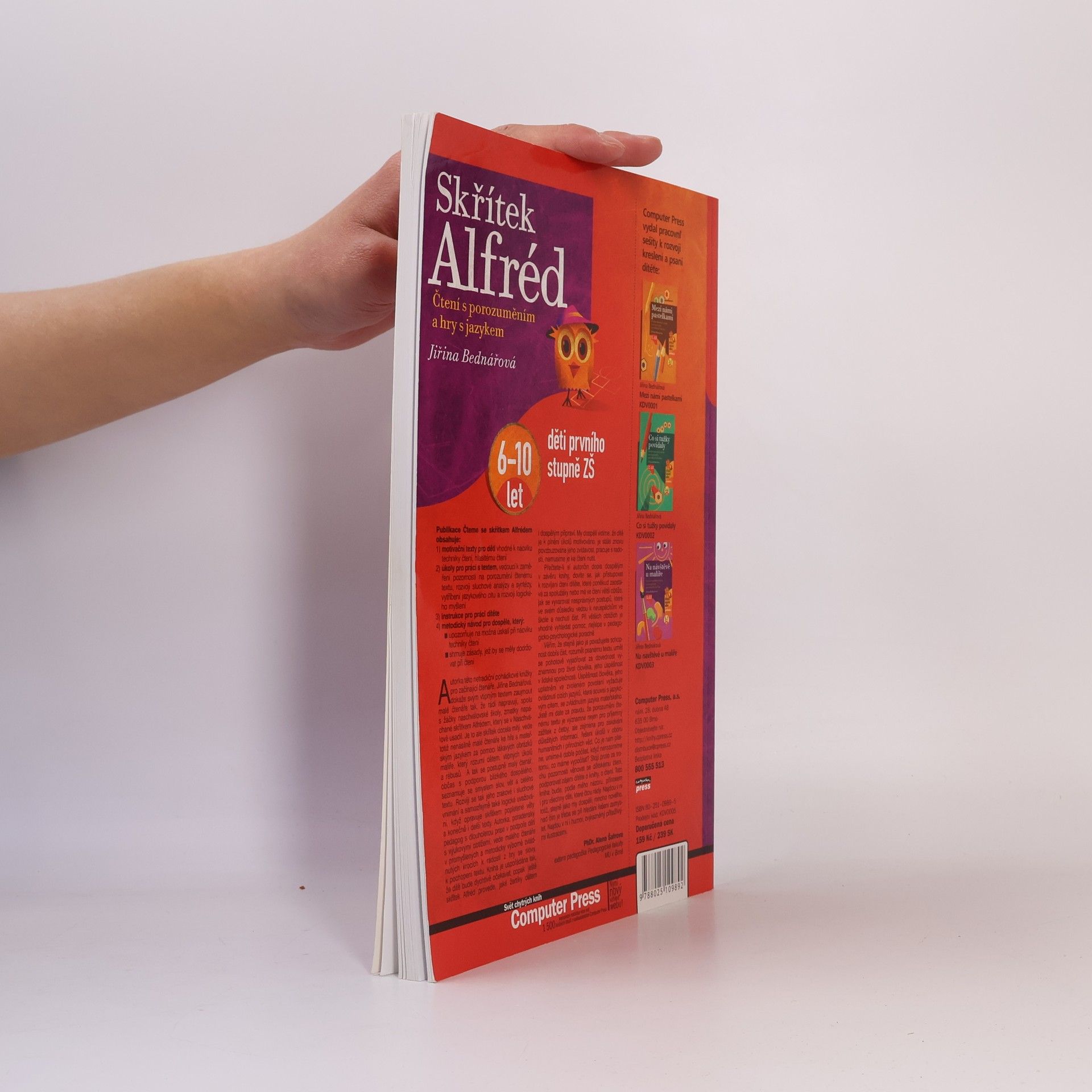 Určeno pro děti ve věku 6-10 let (děti 1. stupně ZŠ). Publikace Čtení se skřítkem Alfrédem obsahuje: 1) motivační texty pro děti vhodné k nácviku techniky čtení, hlasitému čtení 2) úkoly pro práci s textem, vedoucí k zaměření pozornosti na porozumění čtenému textu, rozvoj sluchové analýzy a syntézy, vytříbení jazykového citu a rozvíjení logického myšlení 3) instrukce pro práci dítěte 4) metodický návod pro dospělé, který: - upozorňuje na možná úskalí při nácviku techniky čtení, - shrnuje zásady, jež by se měly dodržovat při čtení.