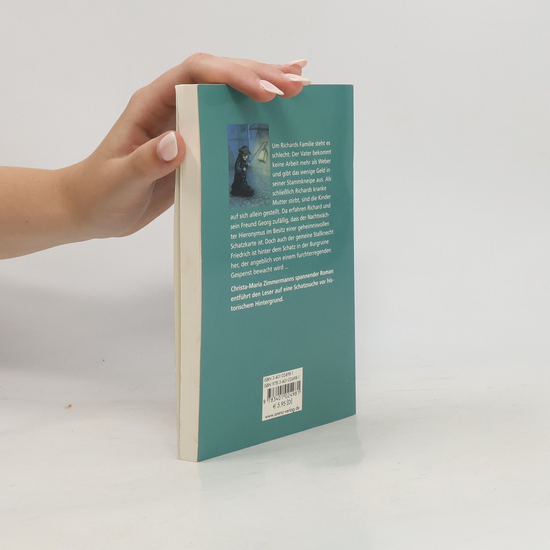 Kaiserwerth 1842. Trotz der schlimmen Erlebnisse, die der Nachtwächter mit seiner Schatzkarte aus dem Jahr 1702 in der Burgruine hatte, machen sich Richard, der Sohn eines armen Webers, und sein Freund Georg auf die Suche nach dem sagenumwobenen Franzosenschatz. Zwar begegnen die Jungen keinem Geist, ihre schließlich von Erfolg gekrönte Expedition aber ist sehr gefahrvoll. Neben dieser zweifellos spannenden Schatzsuche wird ein Eindruck von den jammervollen Lebensbedingungen der sehr kinderreichen Weberfamilien, die vom Wohlwollen großer Manufakturen abhängig waren, vermittelt. Auch spielt die Gründung der Diakonissenanstalt Kaiserwerth, die im streng katholischen Rheinland sehr beargwöhnt wurde, eine große Rolle. Zeitkolorit und Abenteuer bilden eine gelungene Mischung. Großer Druck. Ab 10.