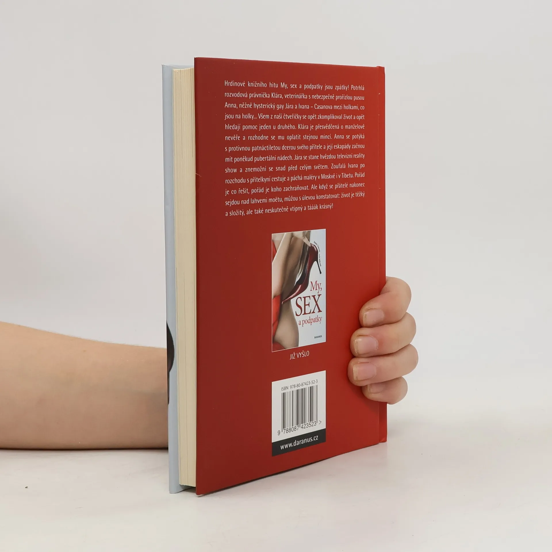 Hrdinové knižního hitu My, sex a podpatky jsou zpátky! Potrhlá rozvodová právnička Klára, veterinářka s nebezpečně prořízlou pusou Anna, něžně hysterický gay Jára a Ivana - Casanova mezi holkami, co jsou na holky... Všem z naší čtveřičky se opět zkomplikoval život a opět hledají pomoc jeden u druhého. Klára je přesvědčená o manželově nevěře a rozhodne se mu oplatit stejnou mincí. Anna se potýká s protivnou patnáctiletou dcerou svého přítele a její eskapády začnou mít poněkud pubertální nádech. Jára se stane hvězdou televizní reality show a znemožní se snad před celým světem. Zoufalá Ivana po rozchodu s přítelkyní cestuje a páchá maléry v Moskvě i v Tibetu. Když se nakonec všechno vyřeší a přátelé se sejdou nad lahvemi moëtu, můžou s úlevou konstatovat: život je těžký a složitý, ale také neskutečně vtipný a tááák krásný!
