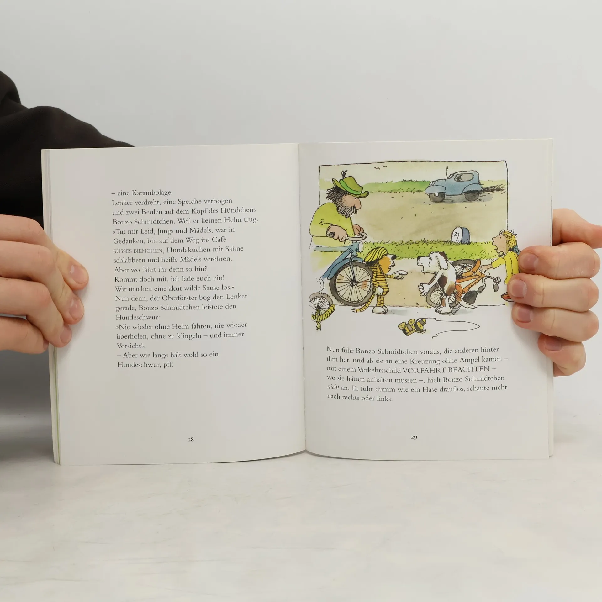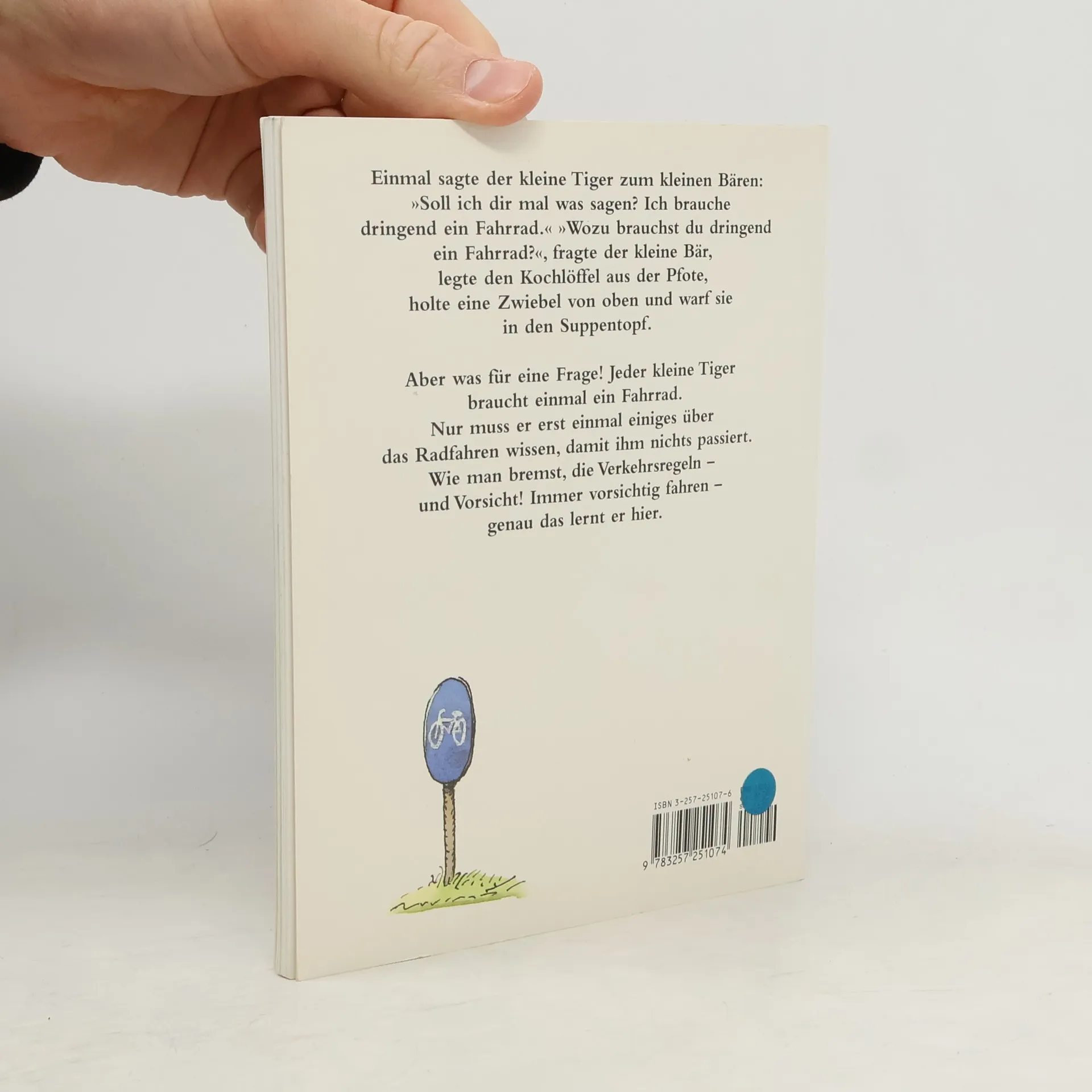 Jeder kleine Tiger braucht einmal ein Fahrrad. Er muss nämlich Land und Leute erforschen und seine Braut besuchen. Nur muss der kleine Tiger erst einmal einiges über das Radfahren wissen, damit ihm nichts passiert. Wie man bremst, was die Verkehrsregeln bedeuten und ganz wichtig: immer vorsichtig fahren. Genau das lernt man hier. Theoretisch und praktisch fast auch.