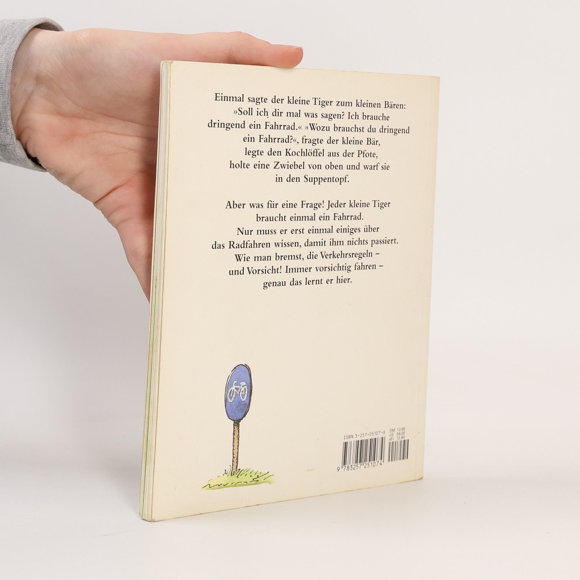 Jeder kleine Tiger braucht einmal ein Fahrrad. Er muss nämlich Land und Leute erforschen und seine Braut besuchen. Nur muss der kleine Tiger erst einmal einiges über das Radfahren wissen, damit ihm nichts passiert. Wie man bremst, was die Verkehrsregeln bedeuten und ganz wichtig: immer vorsichtig fahren. Genau das lernt man hier. Theoretisch und praktisch fast auch.