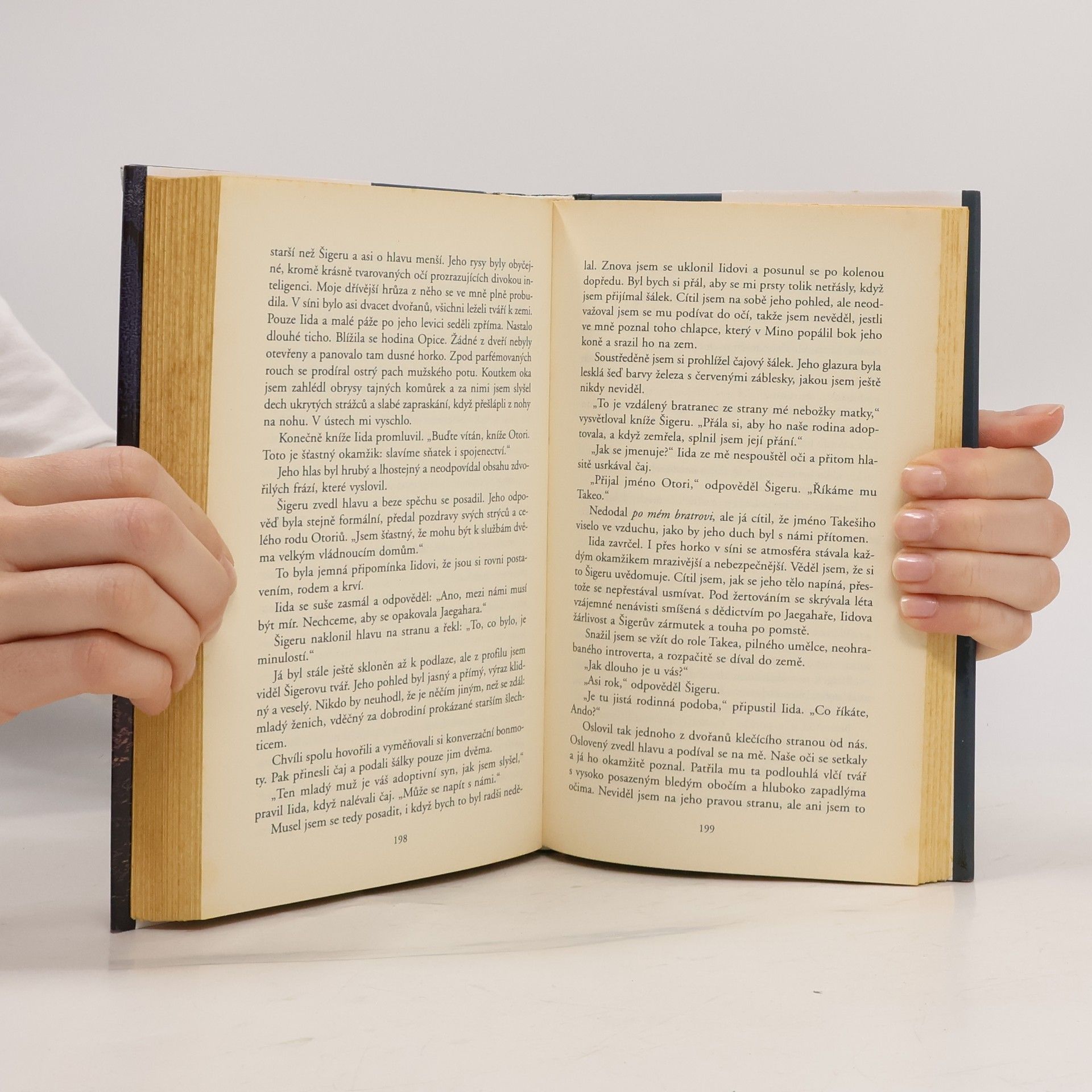 Trilogie rodu Otori 1 Dobrodružný román je první částí trilogie Příběhy rodu Otori. Odehrává se v imaginární zemi za doby feudalismu, za doby bojů mezi knížecími rody o moc. Přestože se jedná o zemi imaginární, je zřejmá autorčina inspirace středověkým Japonskem, světem samurajů a nindžů, japonskými tradicemi a zvyky. Hlavním hrdinou knihy je mladý chlapec Tomasu, který žije se svou rodinou v opuštěné, zapomenuté horské vesnici Skrytých. Poklidný život krutě přeruší útok jednotky vládce Iidy Sadamu, který chce vyhladit všechny Skryté. Celá vesnice je vyvražděna a vypálena, zachránil se jen jediný - Tomasu. Ze smrtelného nebezpečí ho zachrání kníže rodu Otori, Šigeru. Tomasu žije v Otoriho domě, musí změnit svou identitu, nyní je to Takeo, musí zapomenout na náboženství Skrytých, které odmítalo násilí. Postupně se stává bystrým a schopným bojovníkem, jehož smyslům nic neunikne. V jeho srdci sílí touha po pomstě, jeho cílem se stává téměř nemožné - překonat Slavičí podlahu, která chrání knížete Iidu. Souběžně s osudem Takea sledujeme i osudy příslušníků dalších znesvářených knížecích rodů. Kniha je doplněna zajímavým doslovem překladatelky, týkajícím se japonských reálií.