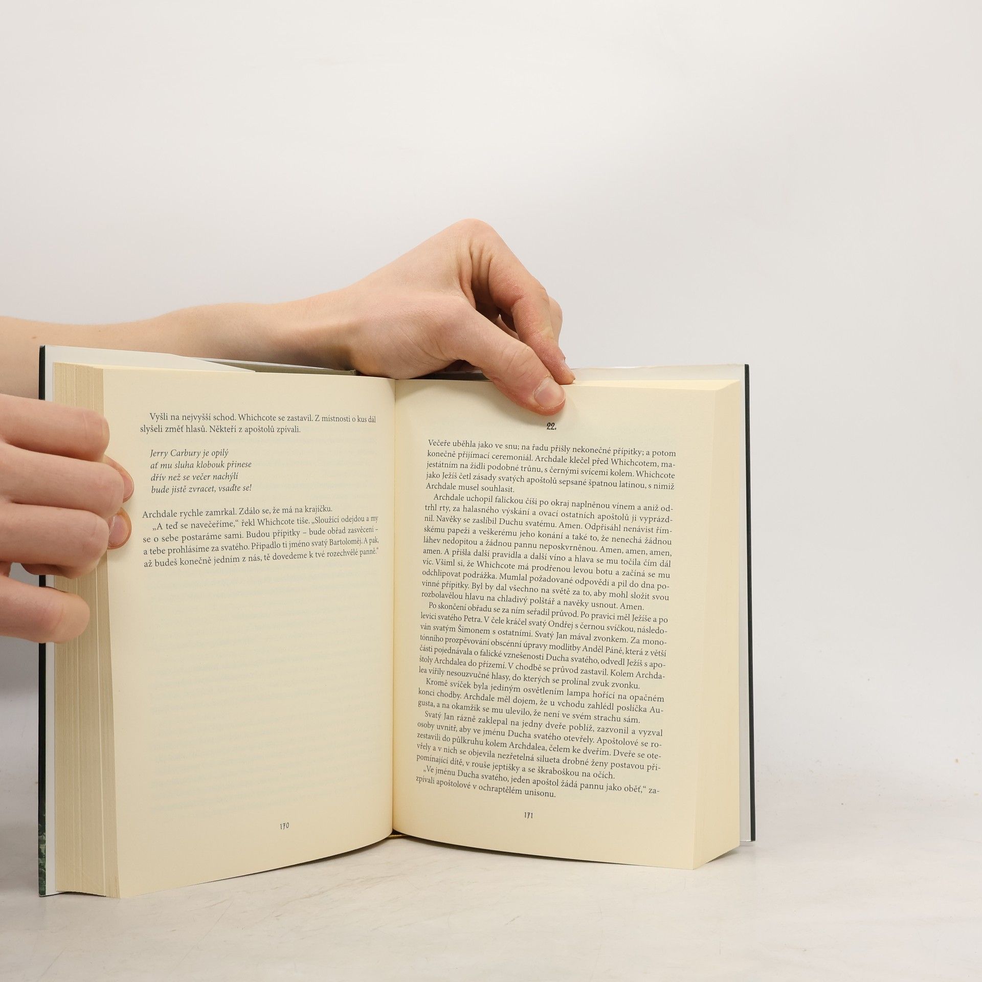 Děj románu se odehrává v Cambridgi roku 1786. Do uzavřeného světa Jeruzalémské koleje přijíždí z Londýna z pověření lady Anny Oldershawové John Holdsworth, aby vyšetřil nejasné okolnosti, jež vedly ke ztrátě paměti u jejího syna Franka, který se údajně setkal s duchem. Holdsworth má pro takové poslání veškeré předpoklady - pod tíhou osobní tragédie, ve které přišel nejprve o malého syna a posléze i o ženu, sepsal a vydal útlý spisek pojednávající o fenoménu duchů. Spisek vyvolal rozruch v tehdejší společnosti a rozdělil ji na dva tábory. Holdsworth netuší, kolik členů Jeruzalémské koleje svým nečekaným příjezdem zneklidnil, a brzy zjistí, že za jejími zdmi se odehrávají podivné, nebezpečné věci. Zdánlivě poklidný akademický život je totiž ovládán zlovolným Spolkem svatého Ducha, jenž stojí i v pozadí mnoha neblahých událostí.