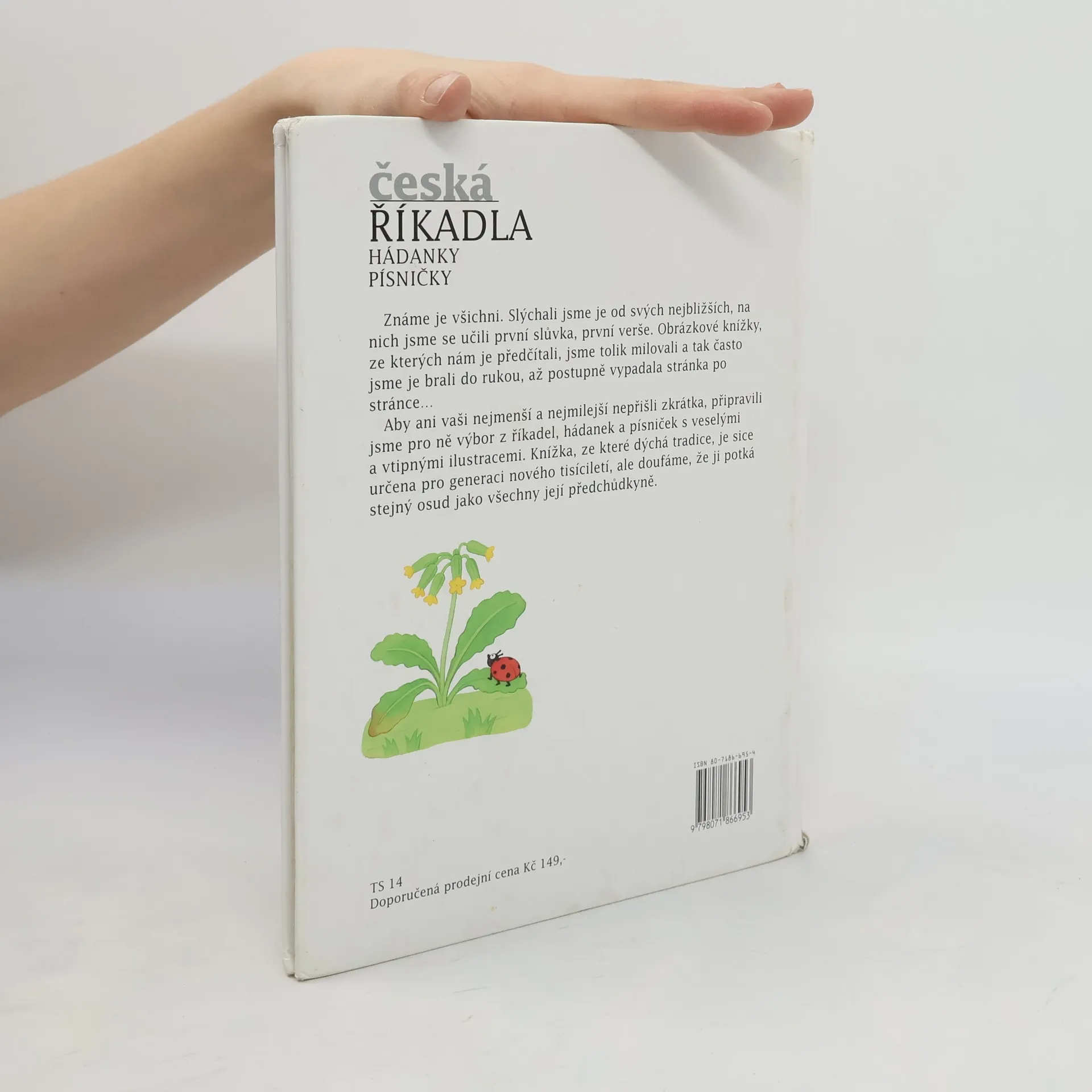 Známe je všichni. Slýchali jsme je od svých nejbližších, na nich jsme se učili první slůvka, první verše. Obrázkové knížky, ze kterých nám je předčítali, jsme tolik milovali a tak často jsme je brali do rukou, až postupně vypadala stránka po stránce... Aby ani vaši nejmenší a nejmilejší nepřišli zkrátka, připravili jsme pro ně výbor z říkadel, hádanek a písniček s veselými a vtipnými ilustracemi. Knížka, ze které dýchá tradice, je sice určena pro generaci nového tisíciletí, ale doufáme, že ji potká stejný osud jako její předchůdkyně.