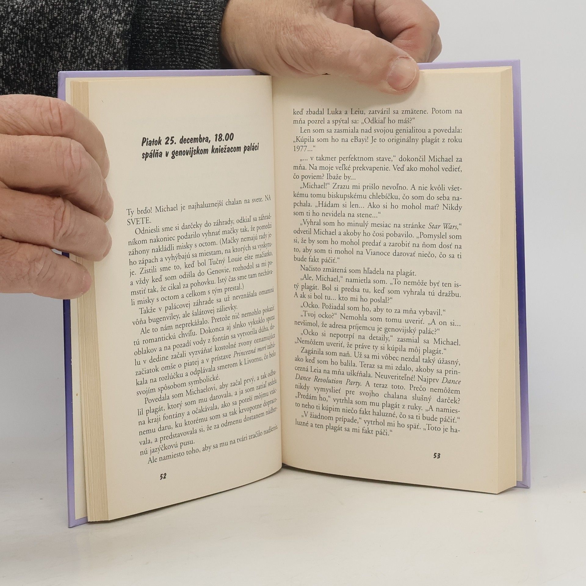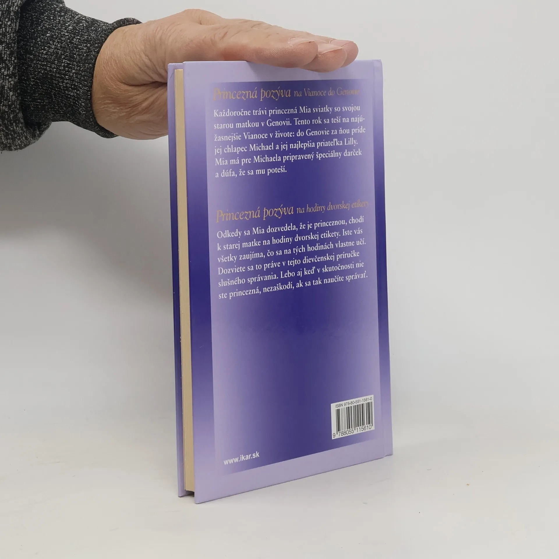 Každoročne trávi princezná Mia sviatky so svojou starou matkou v Genovii. Tento rok sa teší na najúžasnejšie Vianoce v živote: do Genovie za ňou príde jej chlapec Michael a jej najlepšia priateľka Lilly. Mia má pre Michaela pripravený špeciálny darček a dúfa, že sa mu poteší. Princezná pozýva na hodiny dvorskej etikety Odkedy sa Mia dozvedela, že je princeznou, chodí k starej matke na hodiny dvorskej etikety. Iste vás všetky zaujíma, čo sa na tých hodinách vlastne učí. Dozviete sa to práve v tejto dievčenskej príručke slušného správania. Lebo aj keď v skutočnosti nie ste princezné, nezaškodí, ak sa tak naučíte správať