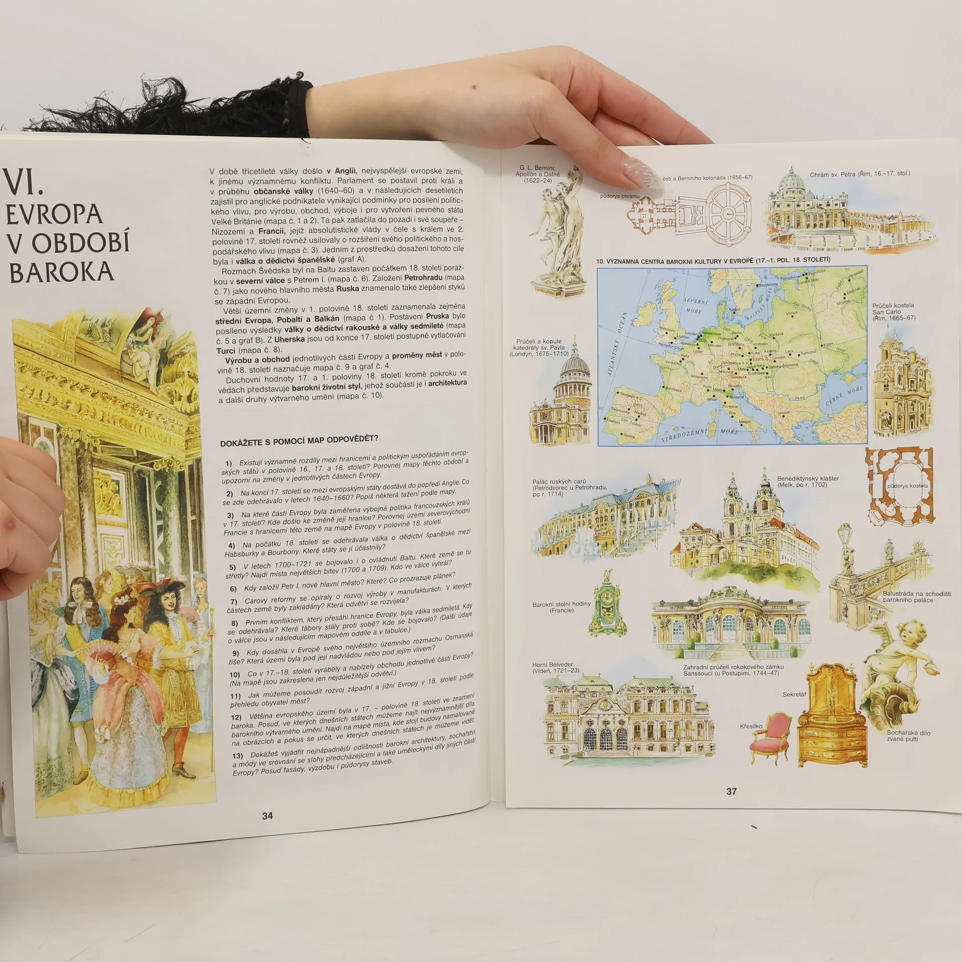 Atlas má i stručnou, ale přehlednou textovou část. V úvodu se zabývá historií zámořských objevů, dále pak chronologicky událostmi 16. až 18. století (politika, hospodářství, kultura, věda) především v Evropě. Výklad je doplněn opravdu spoustou poutavých map Dějepisný atlas zachycuje na názorných mapách, grafech i obrázcích 16. až 18. století