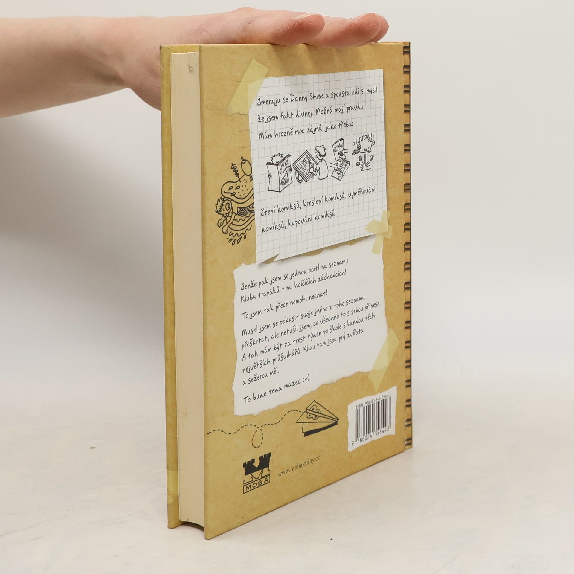 Jmenuju se Danny Shine a spousta lidí si myslí, že jsem fakt divnej. Možná mají pravdu. Mám hrozně moc zájmů, jako třeba: čtení komiksů, kreslení komiksů, vyměňování komiksů, kupování komiksů. Jenže pak jsem se jednou ocitl na seznamu Klubu trapáků – na holčičích záchodcích! To jsem tak přece nemohl nechat! Musel jsem se pokusit svoje jméno z toho seznamu přeškrtat, ale netušil jsem, co všechno to s sebou přinese. A tak mám být za trest týden po škole s bandou těch největších průšvihářů. Kluci tam jsou prý zvířata... To bude mazec. :-(