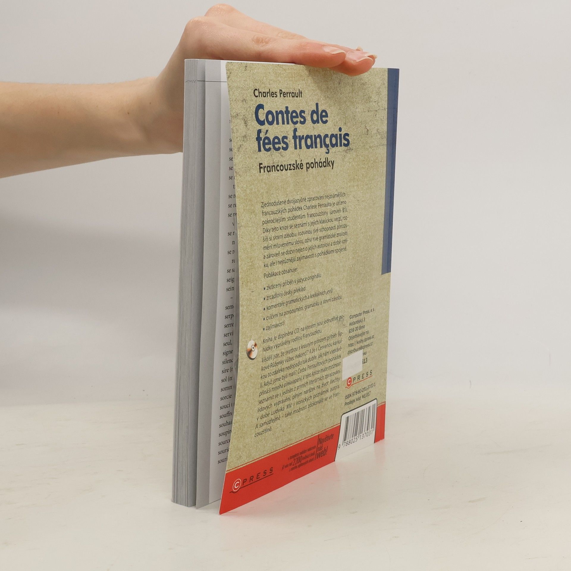 Zjednodušené dvojjazyčné zpracování nejznámějších francouzských pohádek slavného autora Charlese Perraulta je určeno pokročilým studentům francouzštiny. Díky této knize se seznámí s nejslavnějšími a nejznámějšími francouzskými pohádkami, rozšíří si slovní zásobu, rozvinou své schopnosti porozumění mluvenému slovu a zdokonalí se ve výslovnosti.