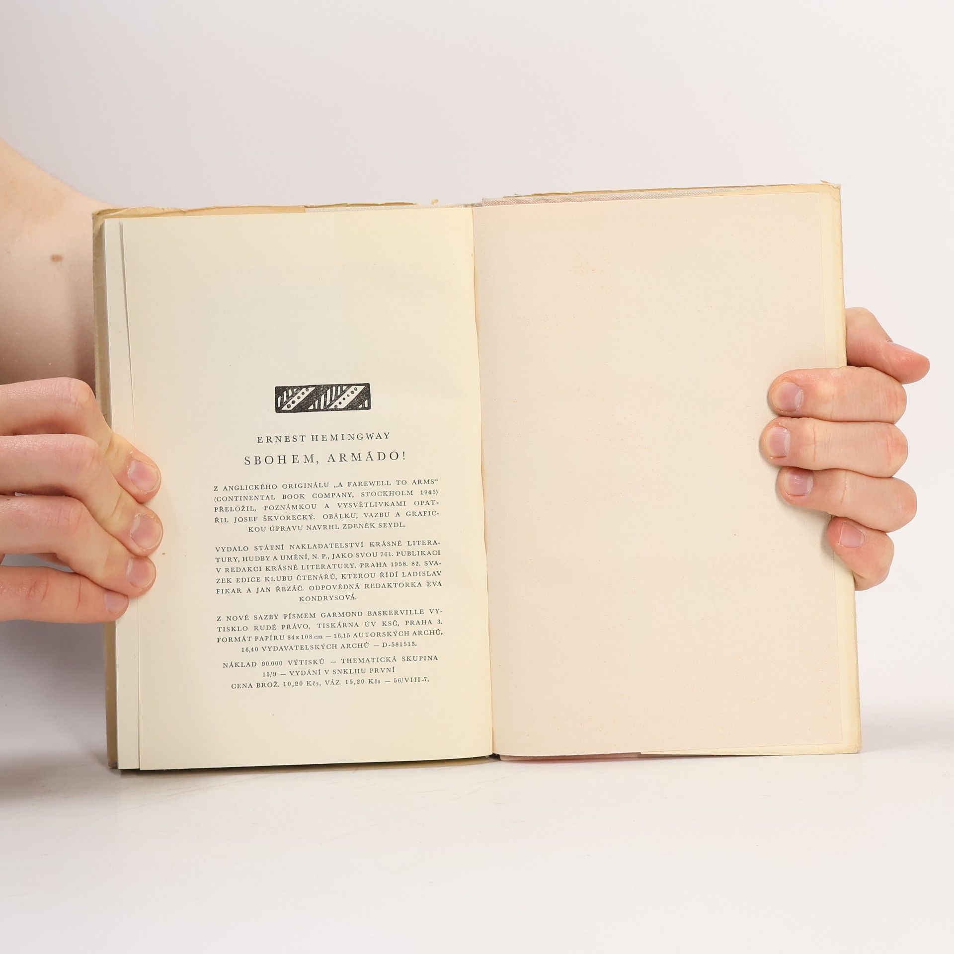 Sbohem, armádo!, Ernest Hemingway, Josef Škvorecký