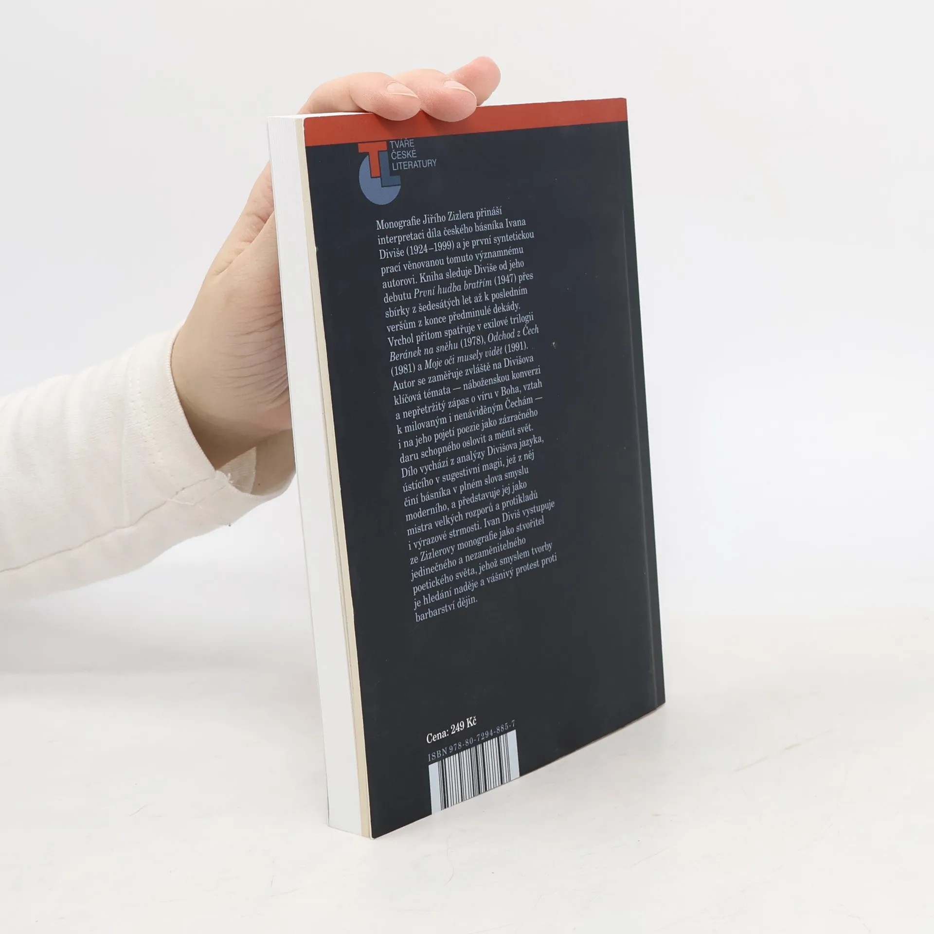 Monografie Jiřího Zizlera přináší interpretaci díla českého básníka Ivana Diviše (1924—1999) a je první syntetickou prací věnovanou tomuto významnému autorovi Kniha sleduje Diviše od jeho debutu První hudba bratřím (1947) přes sbírky z šedesátých let až k posledním veršům z konce předminulé dekády. Vrchol přitom spatřuje v exilové trilogii Beránek na sněhu (1978), Odchod z Čech (1981) a Moje oči musely vidět (1991). Autor se zaměřuje zvláště na Divišova klíčová témata — náboženskou konverzi a nepřetržitý zápas o víru v Boha, vztah k milovaným i nenáviděným Čechám — i na jeho pojetí poezie jako zázračného daru schopného oslovit a měnit svět. Dílo vychází z analýzy Divišova jazyka, ústícího v sugestivní magii, jež z něj činí básníka v plném slova smyslu moderního a představuje jej jako mistra velkých rozporů a protikladů i výrazové strmosti. Ivan Diviš vystupuje ze Zizlerovy monografie jako stvořitel jedinečného a nezaměnitelného poetického světa, jehož smyslem tvorby je hledání naděje a vášnivý protest proti barbarství dějin.