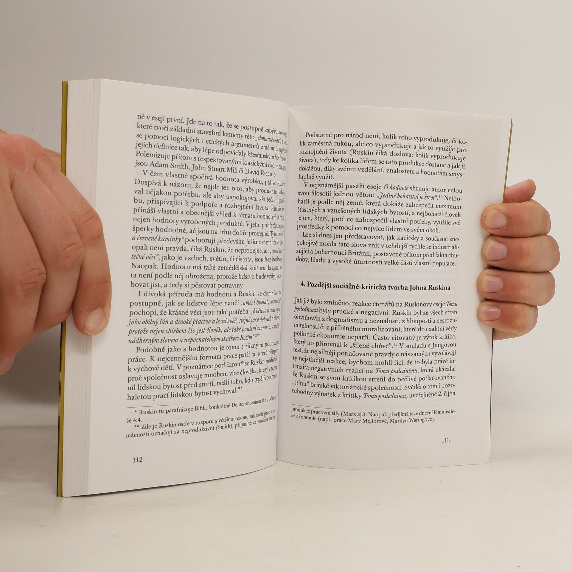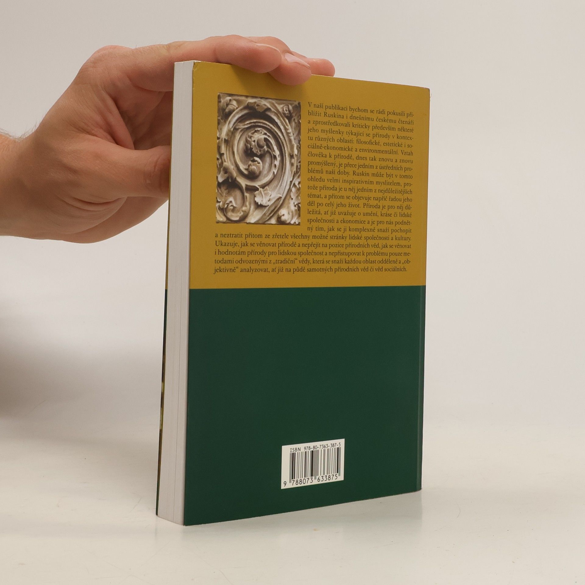 John Ruskin, jeden z nejvýznamnějších britských uměleckých kritiků, význačný akvarelista, sociální i ekonomický vizionář a reformátor, byl současně jedním z nejvýraznějších obdivovatelů a milovníků přírody, především té velehorské. Tři autoři představují a kriticky analyzují Ruskinovy ideje spojené s přírodou v rovině filosofické, estetické a umělecko-kritické, sociálně-ekonomické a environmentální. Texty zkoumají jak Ruskinovy představy o vývoji světa a přírody, tak jeho teze o umění zobrazujícím přírodu, stejně jako podrobnou estetiku přírodních objektů. Část knihy se zaměřuje i na Ruskinovu tvrdou kritiku liberální ekonomie a industrializace jako ničitelů krajiny.
