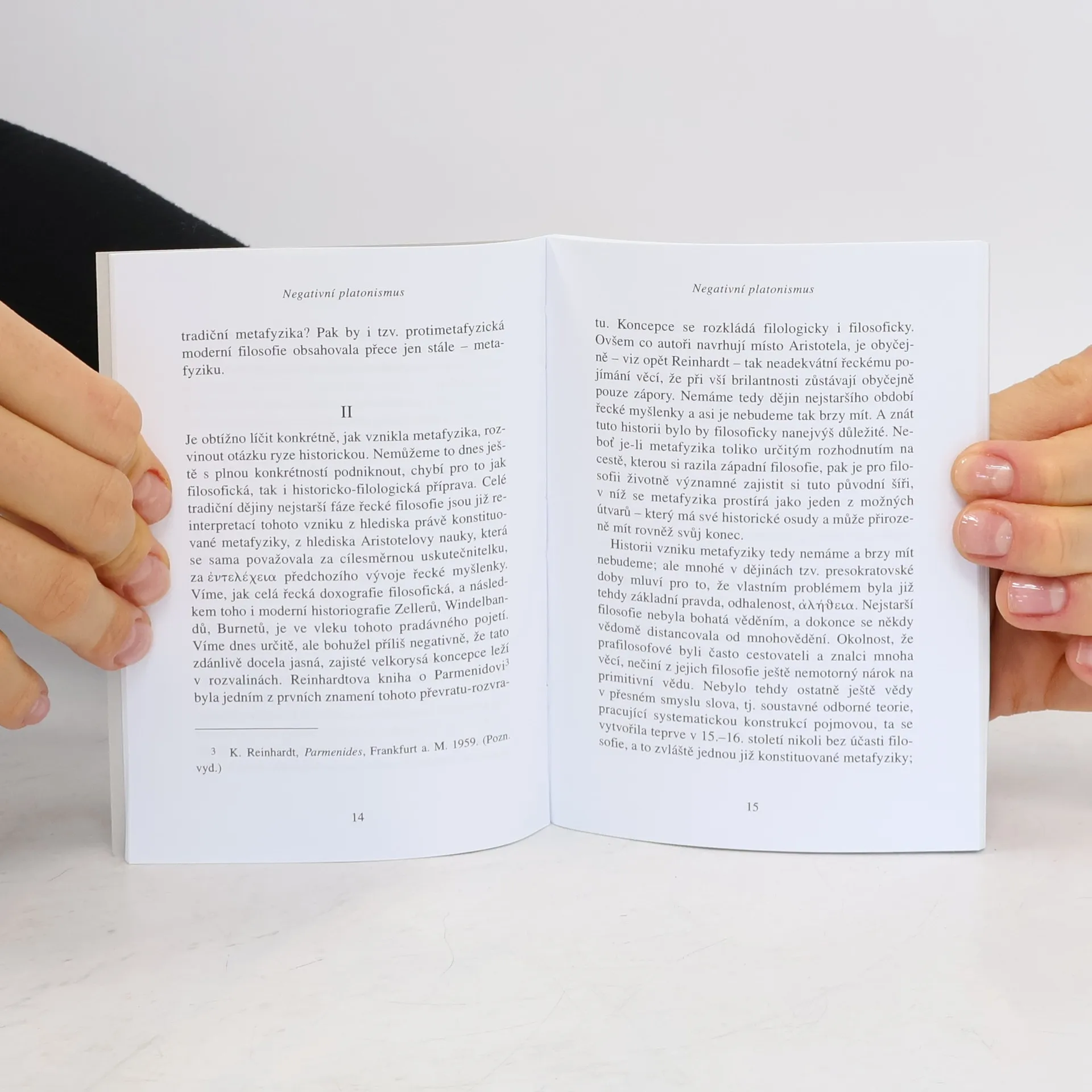 Vydáno u příležitosti nedožitých 100. narozenin autora. Programové shrnutí Patočkových úvah na téma filosofie svobody z počátku padesátých let. Na přelomu 40. a 50. let 20. století koncipoval Patočka pod tímto titulem systematický filosofický rozvrh sahající od otázek ontologických až po analýzu současných forem civilizace. Krátký text Negativní platonismus formuluje jeho myšlenkové jádro.