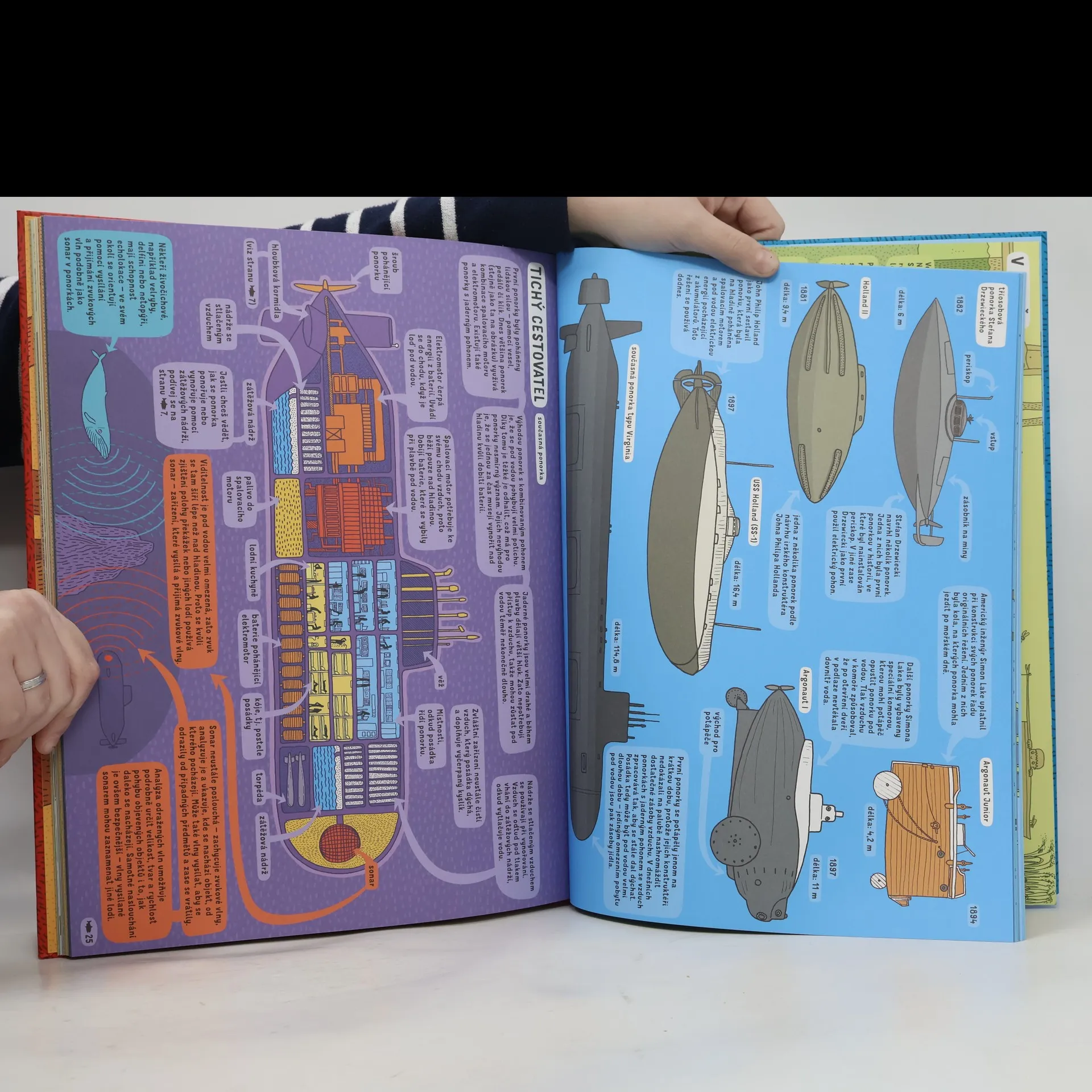 Další fascinující kniha autorů bestsellerových Map. Po obrázkovém putování kolem světa přichází čas na pozoruhodnou výpravu do nitra země a hlubin oceánů. Velkoformátová kniha plná propracovaných ilustrací a detailních průřezů je nabitá informacemi. A netradičně — oboustranná. Ať začnete z kterékoli strany, postupně se noříte pod zemský povrch nebo pod hladinu moří stále hlouběji, abyste se uprostřed knihy setkali v zemském jádru. Na cestě potkáte zvířata žijící pod zemí i podivná stvoření mořských hlubin. Zjistíte, kam sahají nejdelší kořeny na světě. Objevíte složitý systém podzemních potrubí, kabelů a tunelů. Narazíte na senzační vykopávky i zkamenělé kosti dinosaurů. Prohlédnete si všechny možné nory a doupata, zabloudíte v jeskynních bludištích a sjedete až na dno nejhlubšího dolu světa. Vyzkoušíte staré ponorky i skafandry, prozkoumáte vrak Titaniku. Zkrátka odhalíte nejedno tajemství podzemního i podvodního světa.