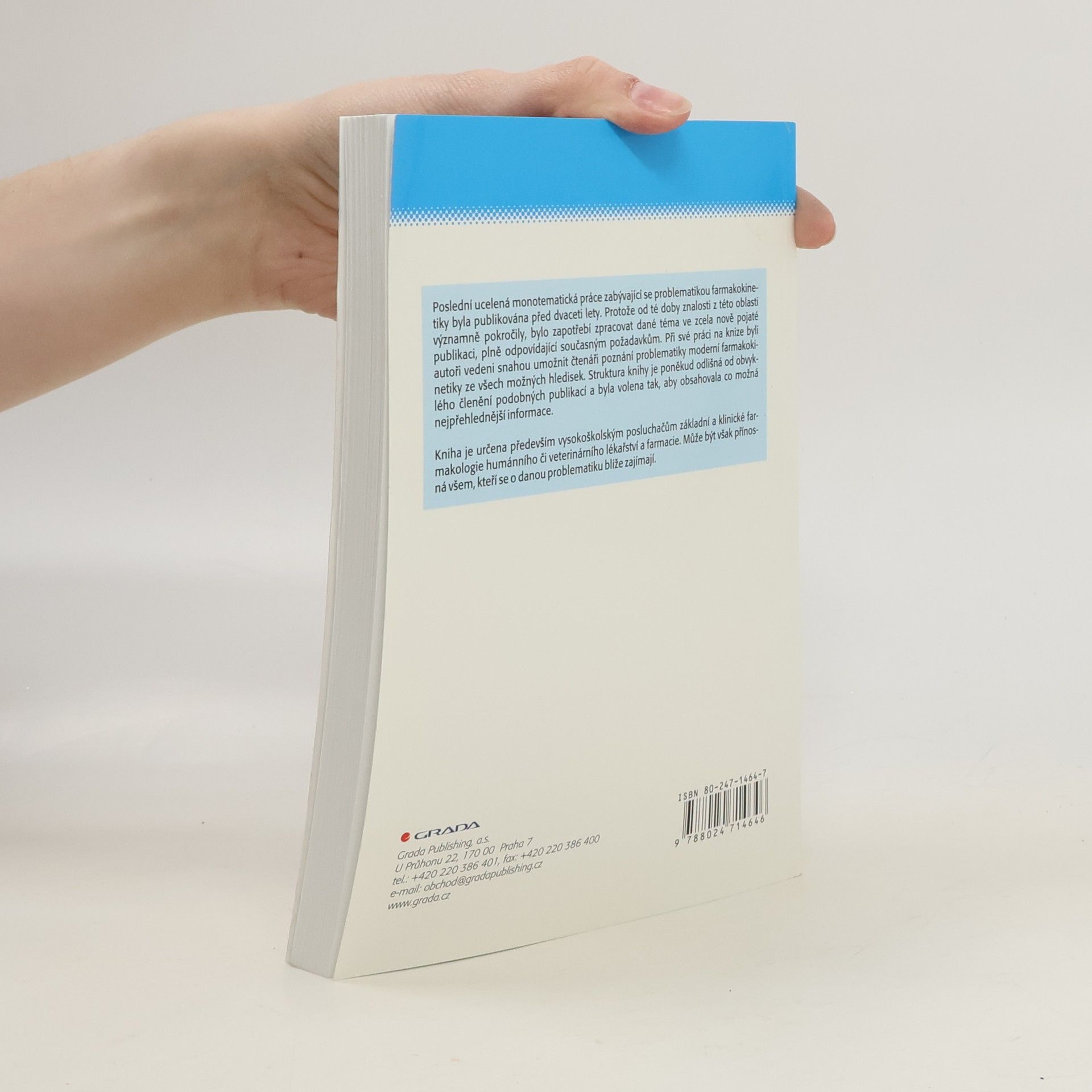 Po více než 20 letech vychází nová ucelená monografie, zabývající se problematikou farmakokinetiky. Autoři zachytili poslední poznatky v oboru a podařilo se jim je spojit do jednotného celku, který zahrnuje více možných pohledů na danou problematiku. Struktura knihy je poněkud odlišná od obvyklého členění látky u obdobných prací a byla zvolena tak, aby kniha obsahovala co možná nejpřehlednější komplexní informace. Kniha je určena především vysokoškolským posluchačům základní a klinické farmakologie humánního či veterinárního lékařství a farmacie. Je vhodná jak pro pregraduální, tak postgraduální studium.
