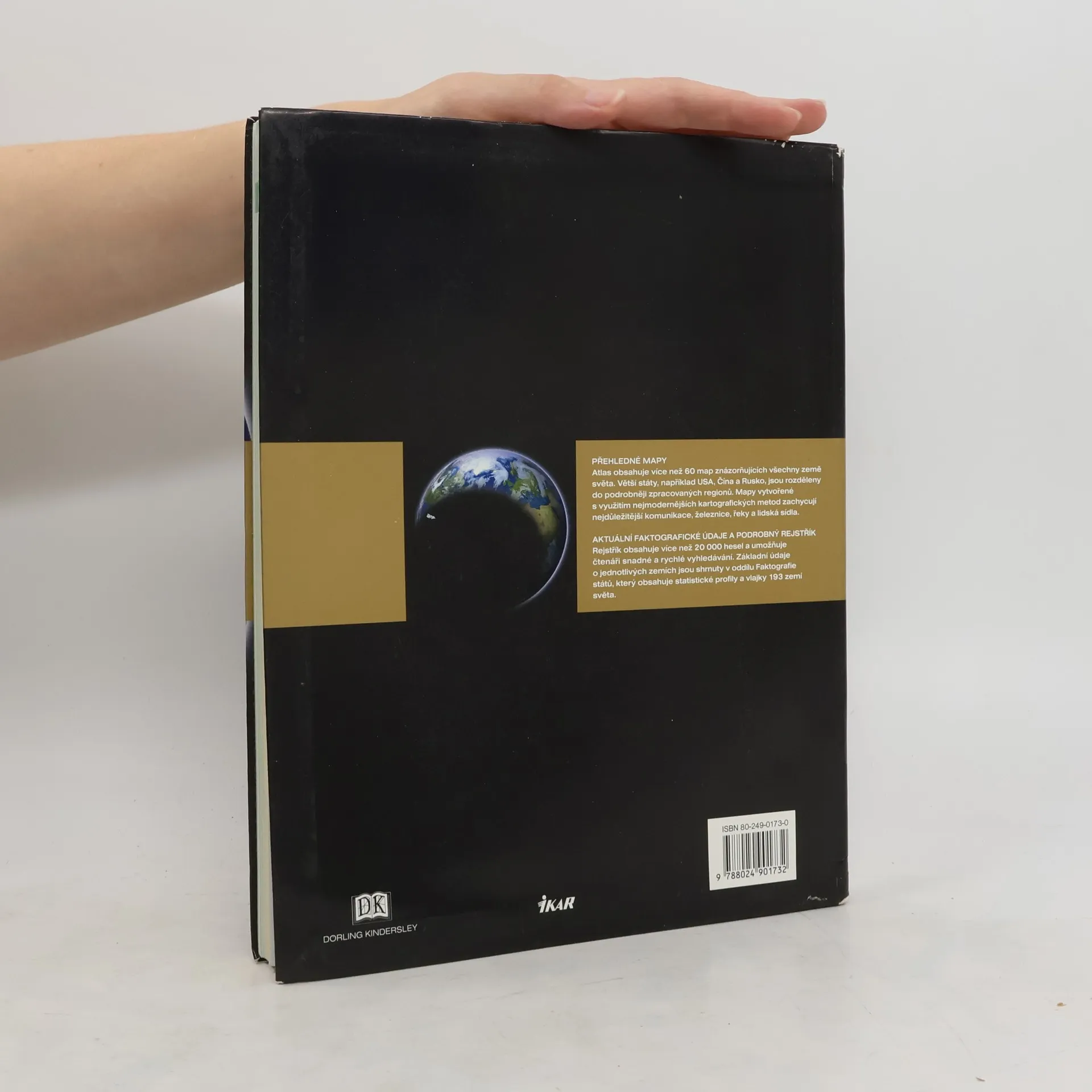 Atlas obsahuje více než 60 map znázorňujících všechny země světa. Větší státy, např. USA, Čína a Rusko, jsou rozděleny do podrobněji zpracovaných regionů. Mapy vytvořené s využitím nejmodernějších kartografických metod zachycují nejdůležitější pozemní komunikace, řeky a lidská sídla. V atlasu najdete aktuální faktografické údaje a podrobný rejstřík s dvaceti tisíci hesly, umožňující rychlé vyhledávání. Nechybí samozřejmě státní vlajky ani statistické profily 193 zemí. Celobarevná publikace.