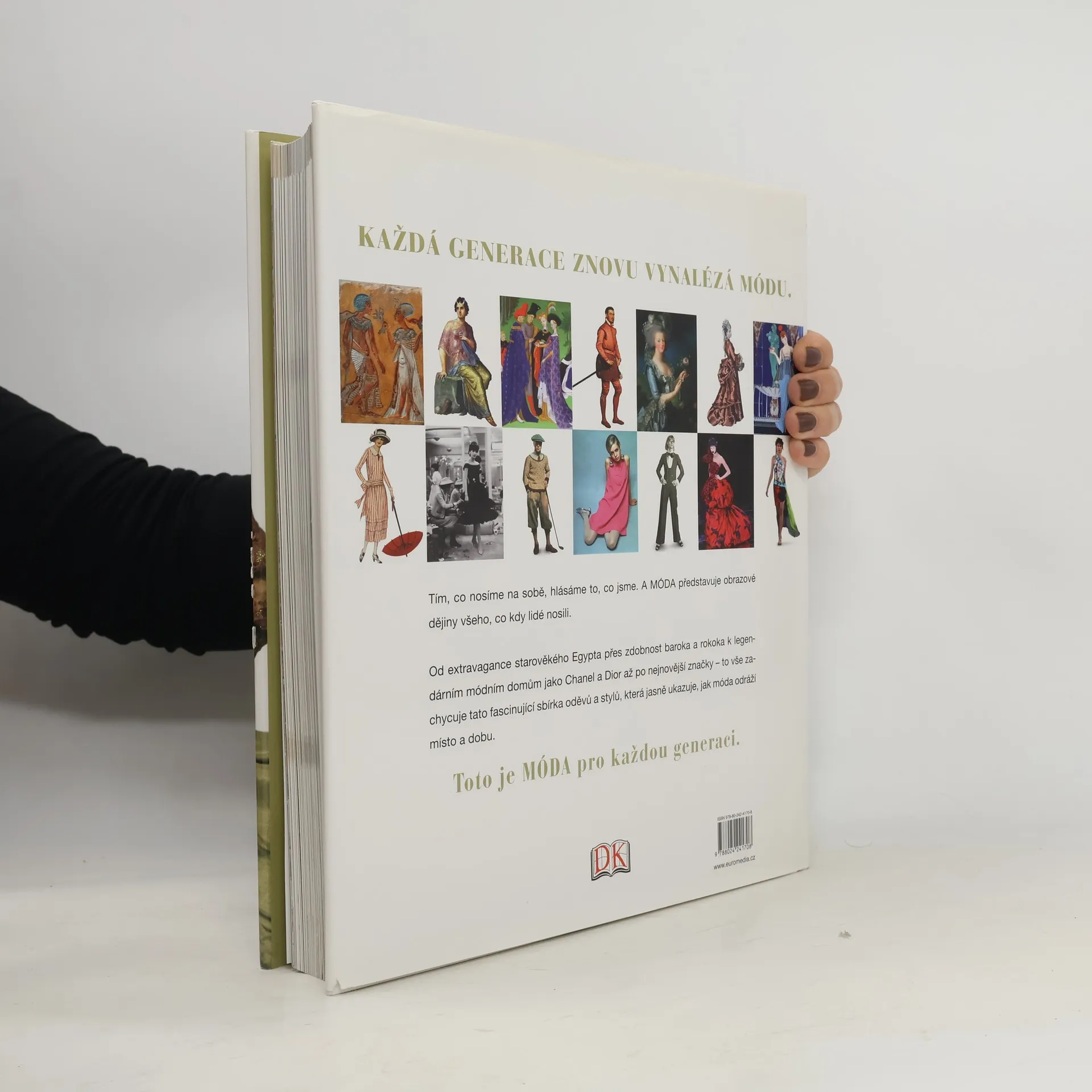 Fascinující obrazový průvodce dějinami světové módy, od starověku po současnost. Od výstředních rób starého Egypta přes renesanci, baroko a proslulé módní domy jako Chanel či Dior po nejmodernější světové značky nabízí tato encyklopedie vyčerpávající přehled všeho, co kdy lidé nosili. Pozoruhodná publikace zve na výpravu do minulosti a prostřednictvím vývoje odívání poskytuje plastický obraz místa a doby.