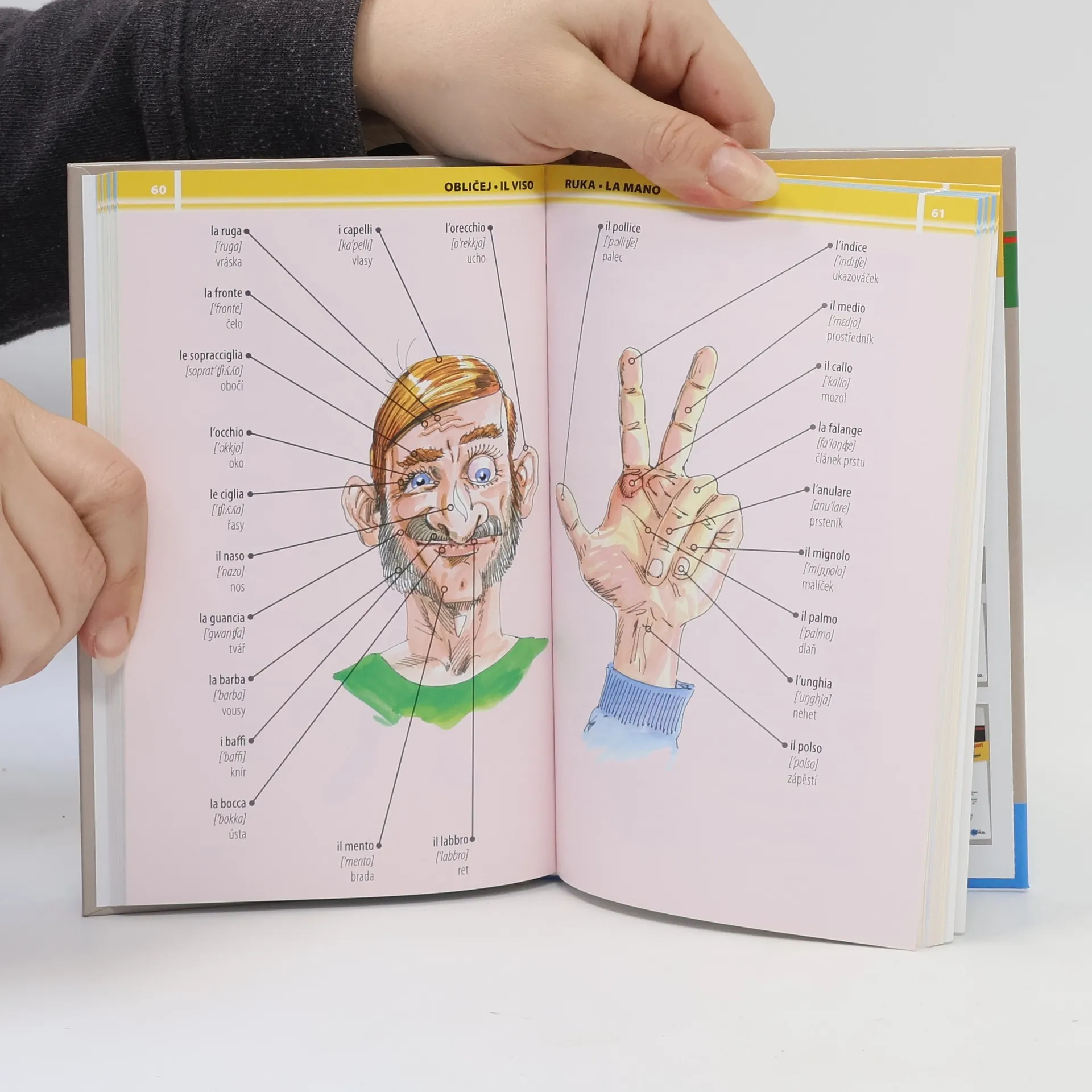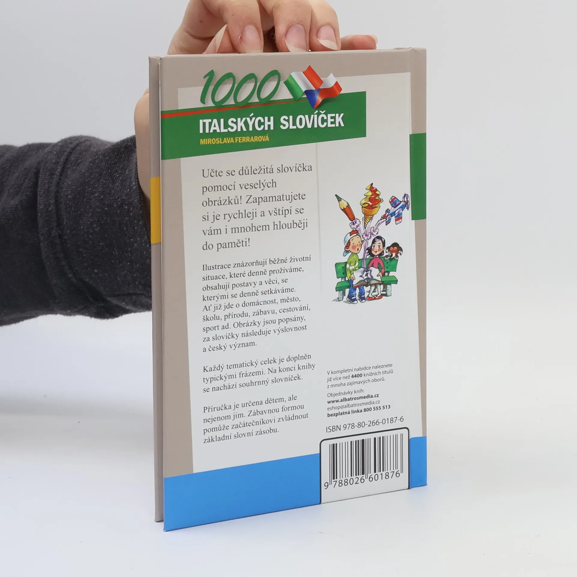 Praktická knížka se stane dobrým pomocníkem při učení a procvičování italských slovíček. Na veselých obrázcích, jež znázorňují běžné životní situace, najdete názvy věcí, se kterými se denně setkáváte. Každý tematický celek je pak doplněn jednoduchými frázemi ze života, které můžete potřebovat. Na konci knížky najdete souhrnný česko-italský slovník se všemi slovy z knížky.