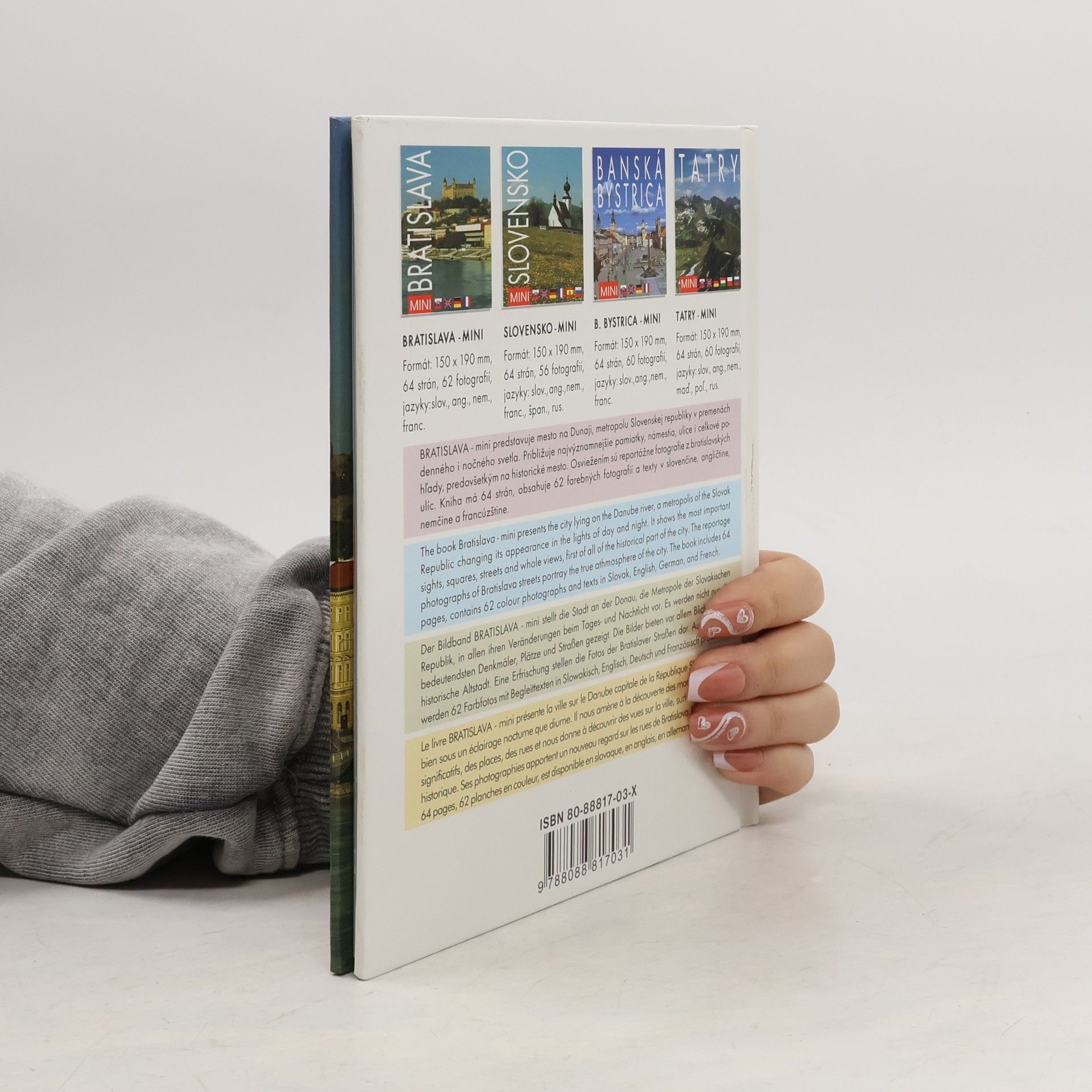 Pozoruhodná obrazová publikácia približuje krásne a vzácne historické pamiatky hlavného mesta Slovenska. Farebné fotografie hradu, dómu sv. Martina, Michalskej veže, starej radnice, Primaciálneho paláca s gobelínmi a ďalšie pozoruhodnosti, sa striedajú z pohľadmi na bratislavské ulice, námestia, cintoríny i parky. Texty sú v štyroch jazykoch: slovenčine, angličtine, nemčine a francúzštine.