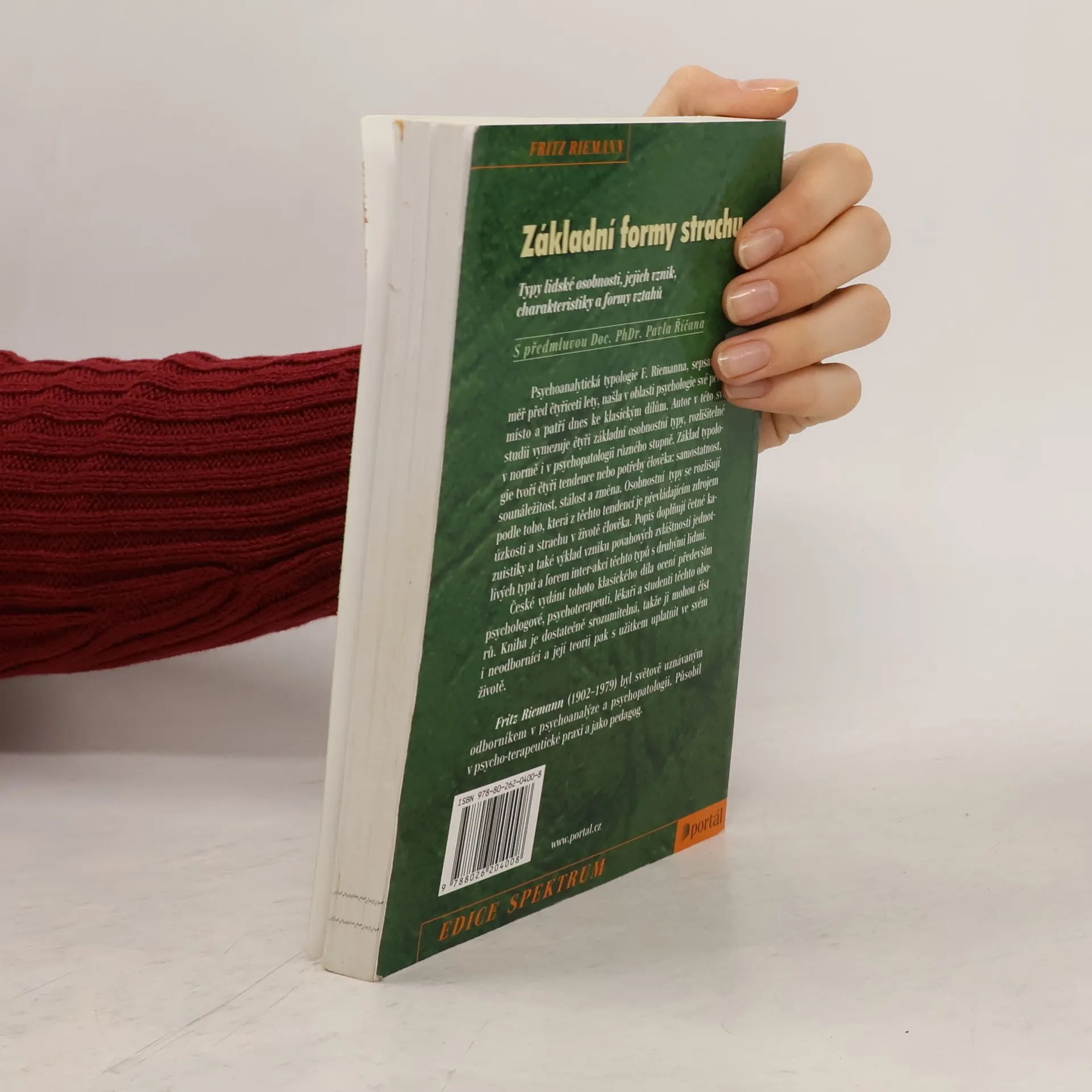 Typy lidské osobnosti, jejich vznik, charakteristiky a formy vztahů. Opětovné vydání psychoanalytické typologie F. Riemanna, jež byla sepsána téměř před čtyřiceti lety, dnes patří ke klasickým dílům, jež si našla v oblasti psychologie své pevné místo. Studie podává vymezení čtyř základních osobnostních typů, rozlišitelných v normě i v psychopatologii různého stupně. Základ typologie tvoří čtyři potřeby či tendence člověka - potřeba samostatnosti, sounáležitosti, stálosti a změny. Osobnostní typy se pak liší tím, která z těchto tendencí je převládajícím zdrojem úzkosti a strachu v životě člověka. Popis doplňují četné kasuistiky, výklad vzniku a povahové zvláštnosti typů či formy interakcí jednotlivých typů s druhými lidmi.