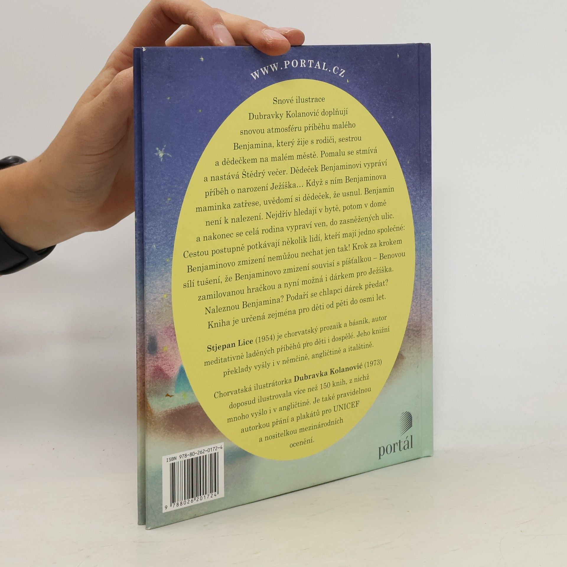 Snové ilustrace Dubravky Kolanovićové doplňují snovou atmosféru příběhu malého Benjamina, který žije s rodiči, malou sestrou a dědečkem na malém městě. Pomalu se stmívá a nastává Štědrý večer. Dědeček Benjaminovi vypráví příběh o narození Ježíška… Když s ním Benjaminova maminka zatřese, uvědomí si dědeček, že usnul. Benjamin není k nalezení. Nejdřív hledají v bytě, potom v domě, a nakonec se celá rodina vypraví ven, do zasněžených ulic. Cestou postupně potkávají několik lidí, kteří mají jedno společné: Benjaminovo zmizení nemůžou nechat jen tak! Postupně zesílí tušení, že Benjaminovo zmizení souvisí s píšťalkou – Benovou zamilovanou hračkou a nyní možná i dárkem pro Ježíška. Naleznou Benjamina? Podaří se chlapci dárek předat? Kniha je určená zejména pro děti od pěti do osmi let.