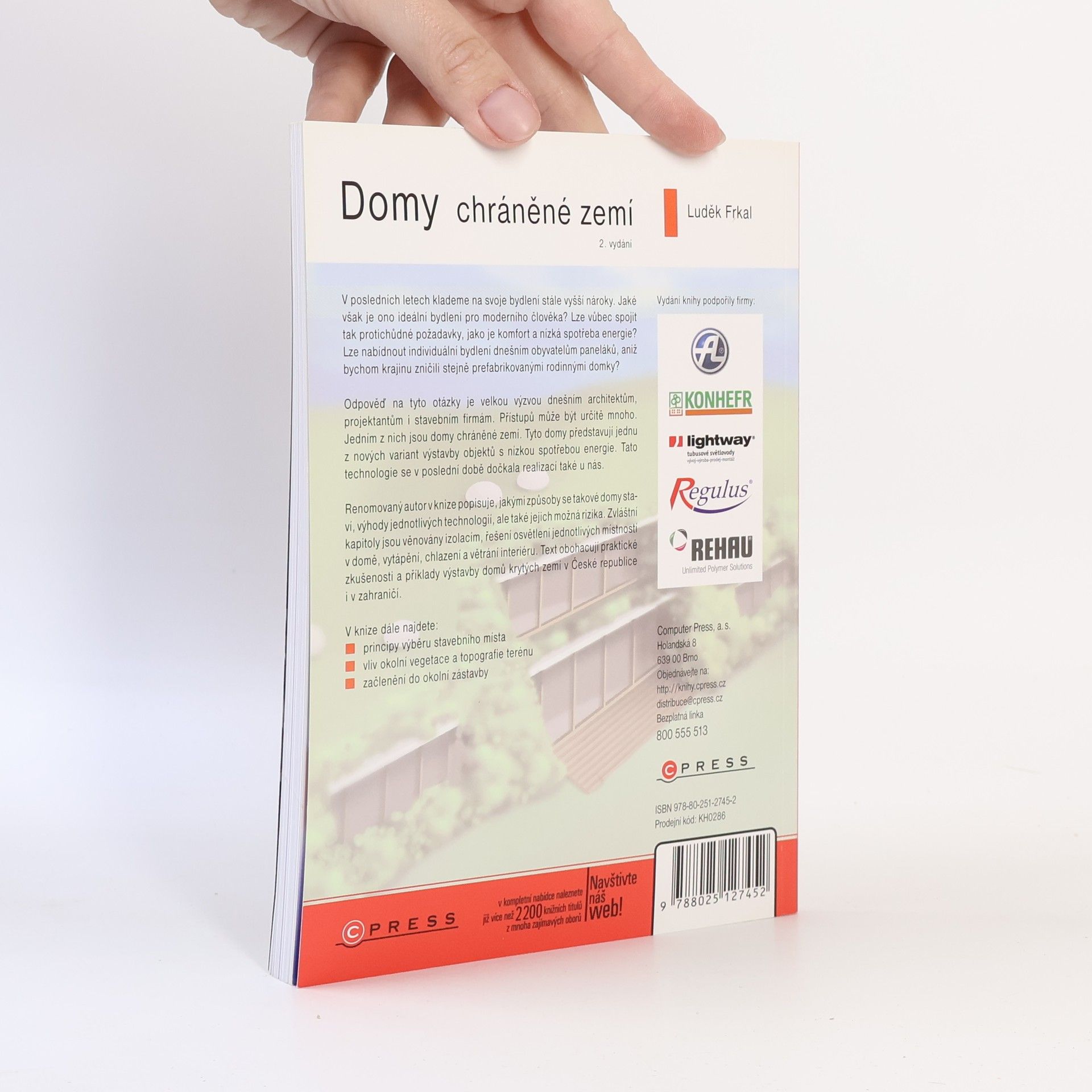 V posledních letech klademe na svoje bydlení stále vyšší nároky. Jaké však je ono ideální bydlení pro moderního člověka? Lze vůbec spojit tak protichůdné požadavky, jako je komfort a nízká spotřeba energie? Lzenabídnout individuální bydlení dnešním obyvatelům paneláků, aniž bychom krajinu zničili stejně prefabrikovanými rodinnými domky? Odpověď na tyto otázky je velkou výzvou dnešním architektům, projektantůmi stavebním firmám. Přístupů může být určitě mnoho. Jedním z nich jsou domy chráněné zemí. Tyto domy představují jednu z nových variant výstavby objektů s nízkou spotřebou energie. Tato technologiese v poslední době dočkala realizací také u nás.Renomovaný autor v knize popisuje, jakými způsoby se takové domystaví, výhody jednotlivých technologií, ale také jejich možná rizika.Zvláštní kapitoly jsou věnovány izolacím, řešení osvětlení jednotlivýchmístností v domě, vytápění, chlazení a větrání interiéru. Text obohacujípraktické zkušenosti a příklady výstavby domů krytých zemí v Českérepublice i v zahraničí.