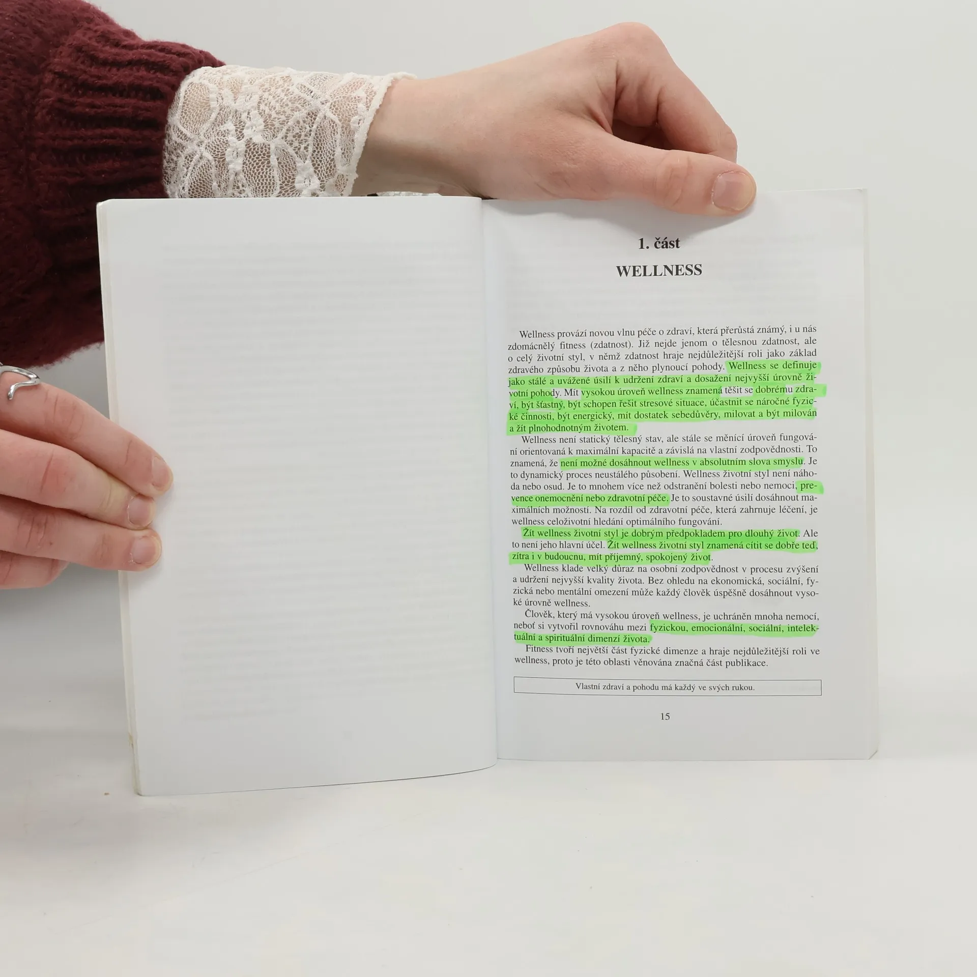 Publikace pomáhá orientovat se v základních aspektech, které ovlivňují kvalitní život a dobré zdraví (welness). Autorka postupně vysvětluje základní pojmy welness životního stylu a nově interpretuje význam tělesné zdatnosti (fyzický fitness) pro zdravý a plnohodnotný lidský život. V samostatných kapitolách se věnuje i výživě, kontrole hmotnosti, duševnímu zdraví, stárnutí, různým návykům či některým chronickým onemocněním.