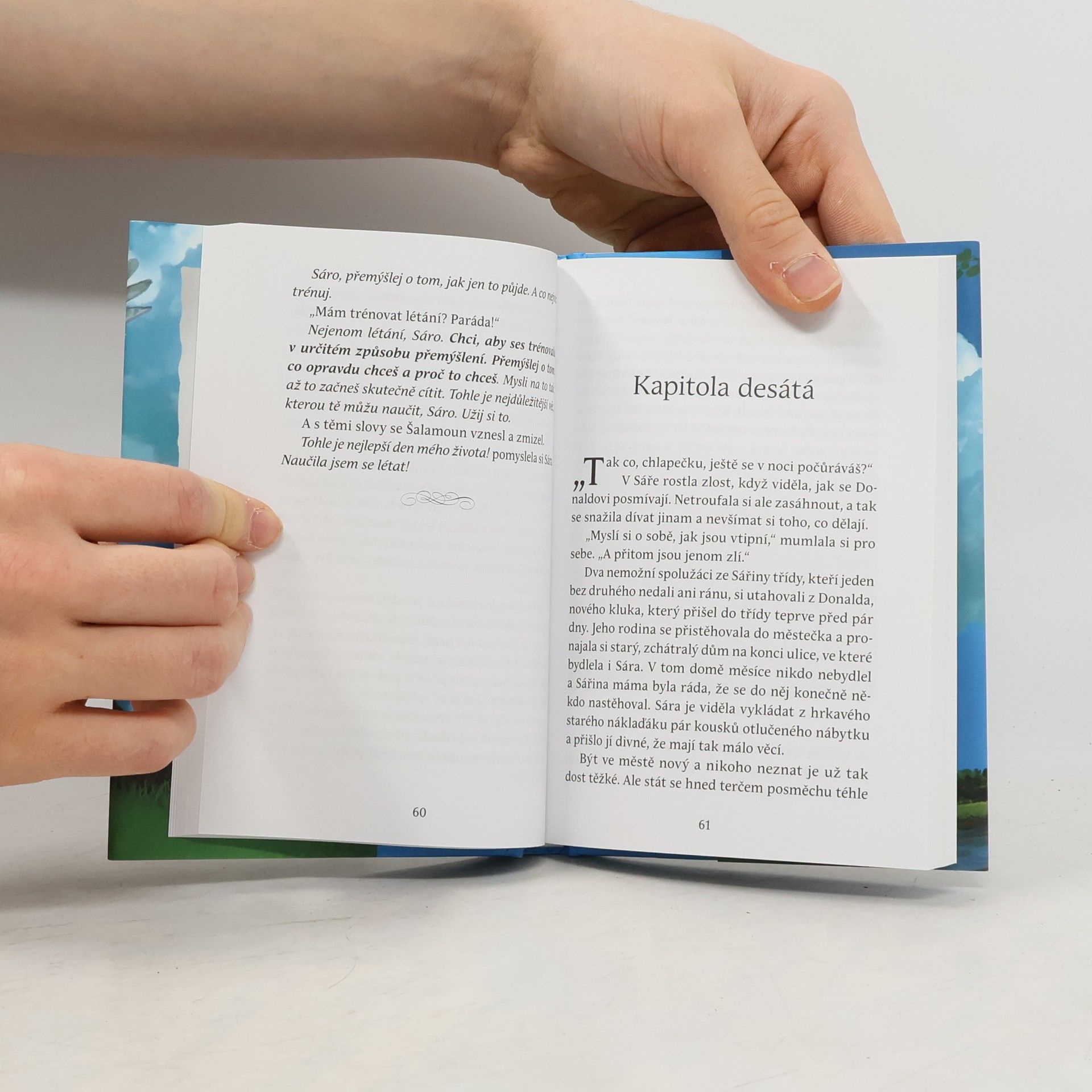 O věčném přátelství dvou blízkých duší. Sára je plachá, uzavřená desetiletá dívka, která není příliš šťastná. Má zlomyslného bratra, který ji neustále provokuje, kruté a bezcitné spolužáky, a ve škole ji to moc nebaví. Je zkrátka jako mnoho jiných dnešních dětí. To všechno se změní, když potká Šalamouna, moudrou nadpozemskou sovu, která jí ukáže, jak se na svět dívat jinak, očima bezvýhradné lásky. Naučí Sáru, jak přijímat čistou, pozitivní energii. Sára poprvé vidí, kým skutečně je a jak neomezené možnosti má. Jako čtenáři si uvědomíte, že je to mnohem víc než dětská knížka. Je to návod, jak získat radost a štěstí, které jsou naším vrozeným právem. Budete se Sárou sdílet její vzlety i propady na cestě k většímu naplnění a uvědomíte si, že takové dítě je v každém z nás.