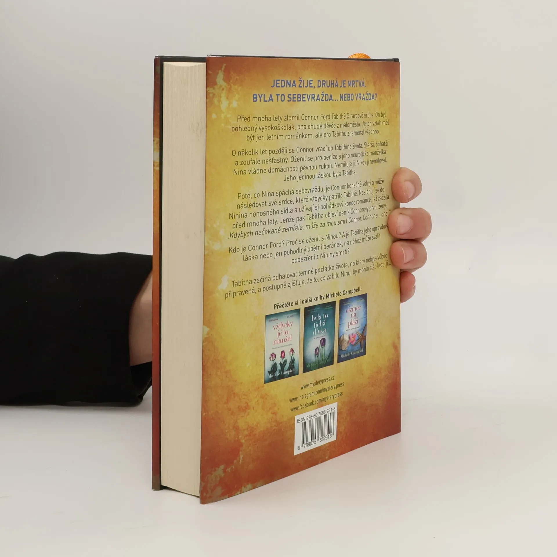 JEDNA ŽIJE, DRUHÁ JE MRTVÁ. BYLA TO SEBEVRAŽDA… NEBO VRAŽDA? Před mnoha lety zlomil Connor Ford Tabithě Girardové srdce. On byl pohledný vysokoškolák, ona chudé děvče z maloměsta. Jejich vztah měl být jen letním románkem, ale pro Tabithu znamenal všechno. O několik let později se Connor vrací do Tabithina života. Starší, bohatší a zoufale nešťastný. Oženil se pro peníze a jeho neurotická manželka Nina vládne domácnosti pevnou rukou. Nemiluje ji. Nikdy ji nemiloval. Jeho jedinou láskou byla Tabitha. Poté, co Nina spáchá sebevraždu, je Connor konečně volný a může následovat své srdce, které vždycky patřilo Tabithě. Nastěhují se do Ninina honosného sídla a užívají si pohádkový konec romance, jež začala před mnoha lety. Jenže pak Tabitha objeví deník Connorovy první ženy. „Kdybych nečekaně zemřela, může za mou smrt Connor. Connor a… ona.“ Kdo je Connor Ford? Proč se oženil s Ninou? A je Tabitha jeho opravdová láska nebo jen pohodlný obětní beránek, na něhož může svalit podezření z Nininy smrti? Tabitha začíná odhalovat temné pozlátko života, na který nebyla vůbec připravená, a postupně zjišťuje, že to, co zabilo Ninu, by mohlo stát život i ji…