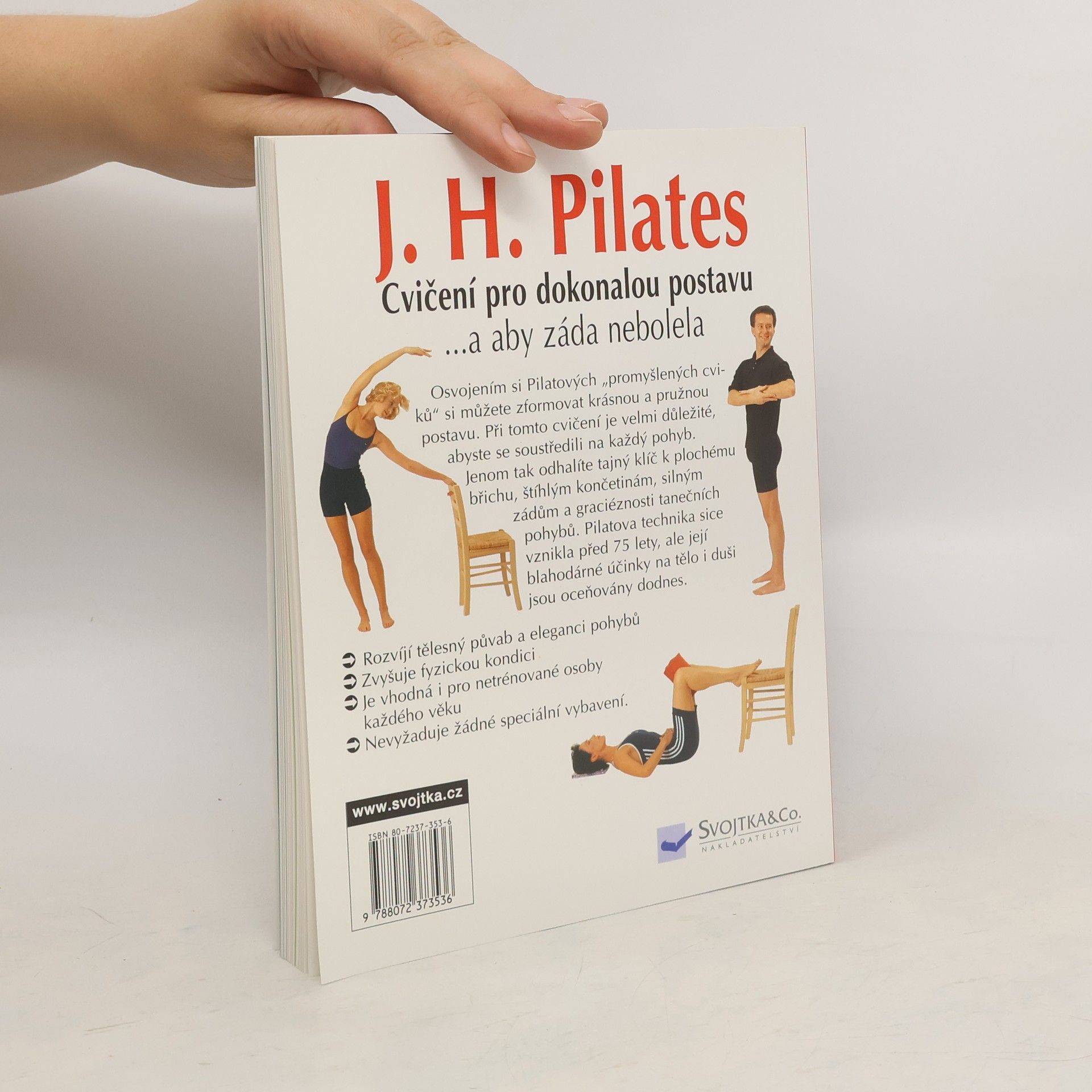 Cvičení pro dokonalou postavu... a aby záda nebolela . Osvojením si Pilatových "promyšlených cviků" si můžete zformovat krásnou a pružnou postavu. Při tomto cvičení je velmi důležité, abyste se soustředili na každý pohyb. Jenom tak odhalíte tajný klíč k plochému břichu, štíhlým končetinám, silným zádům a graciéznosti tanečních pohybů. Pilatova technika sice vznikla před 75 lety, ale její blahodárné účinky na tělo i duši jsou oceňovány dodnes. - Rozvíj í tělesný půvab a eleganci pohybů - Zvyšuje fyzickou kondici - Je vhodná i pro netrénované osoby každého věku - Nevyžaduje žádné speciální vybavení.