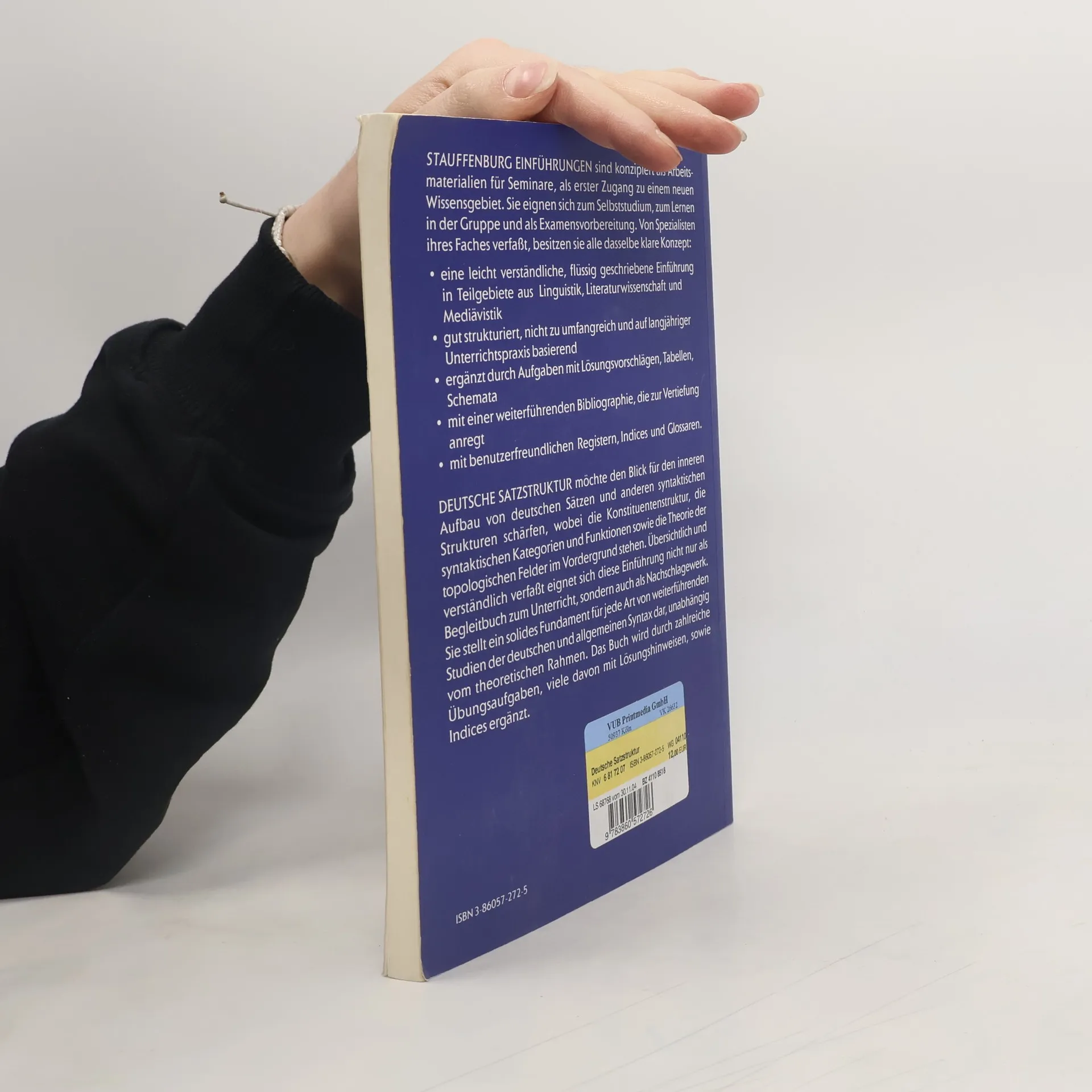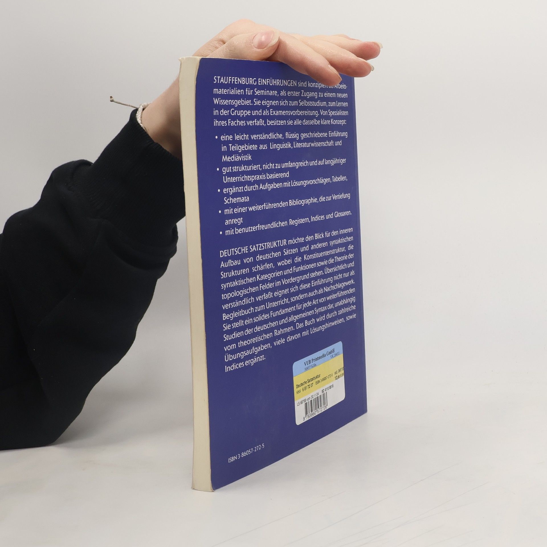 Das Ziel dieser Einführung ist es, den Blick für den inneren Aufbau von deutschen Sätzen und anderen syntaktischen Strukturen zu schärfen. Übersichtlich und verständlich verfaßt eignet sich diese Einführung in die syntaktische Analyse nicht nur als Begleitbuch zum Unterricht, sondern auch als Nachschlagewerk. Sie stellt ein solides Fundament für jede Art von weiterführenden Studien der deutschen und allgemeinen Syntax dar, unabhängig vom theoretischen Rahmen. Eingegangen wird unter anderem auf folgende zentrale Teile der syntaktischen Analyse: Konstituentenstruktur Wortarten und Phrasenkategorien Syntaktische Funktionen Topologische Grundbegriffe Grundlagen der Argumentenstruktur Das Buch wird durch zahlreiche Übungsaufgaben, viele davon mit Lösungshinweisen, sowie Indices ergänzt.