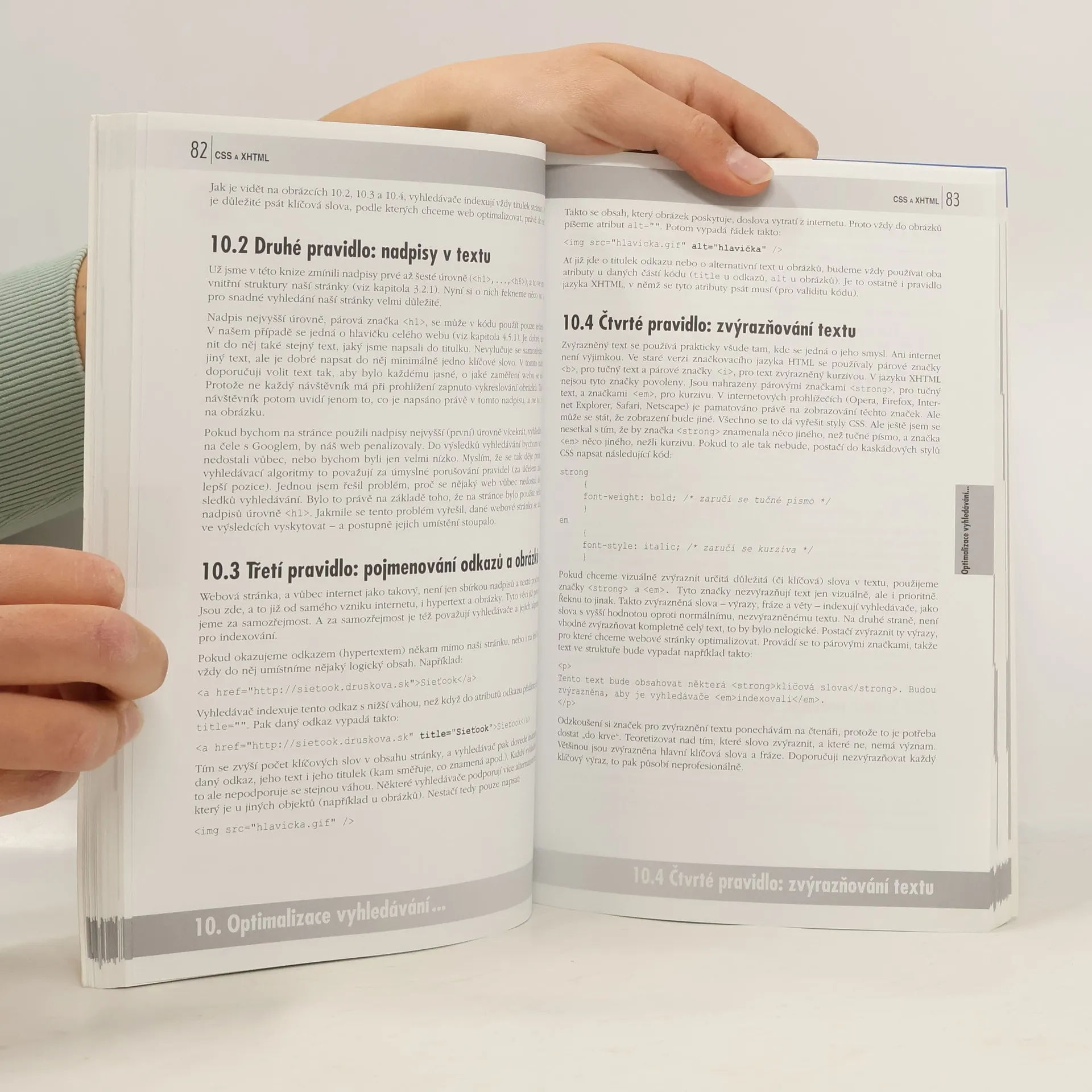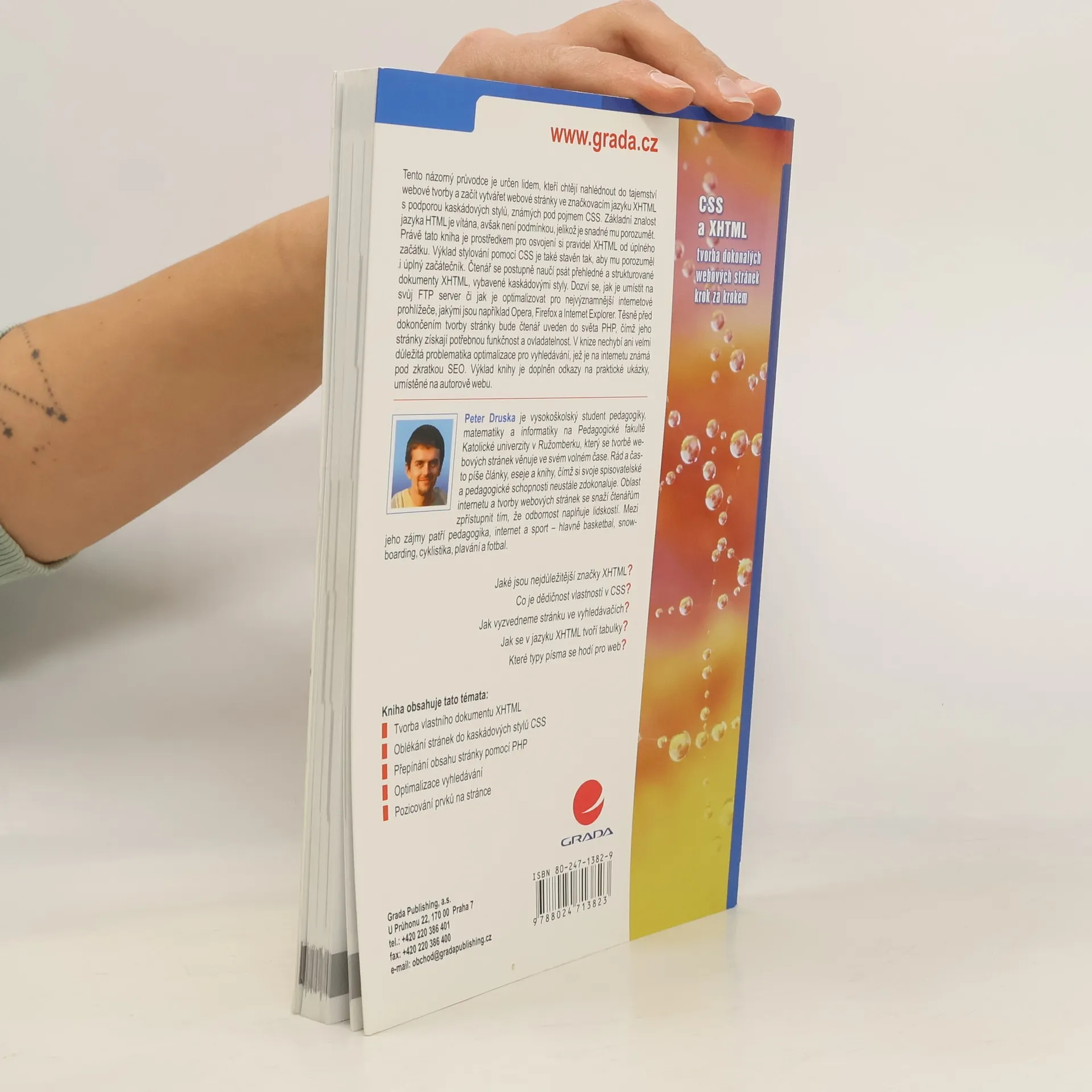 Tato kniha je určena lidem, kteří chtějí nahlédnout do tajemství webové tvorby a začít vytvářet webové stránky ve značkovacím jazyku XHTML s podporou kaskádových stylů, známých pod pojmem CSS. Základní znalost jazyka HTML je vítána, avšak není podmínkou – natolik je tento jazyk snadné porozumět. Právě tato kniha je prostředkem pro osvojení si pravidel XHTML od úplného začátku. Osvojování stylování pomocí CSS je také stavěno tak, aby mu porozuměl i úplný začátečník. Čtenář se postupně naučí psát přehledné a strukturované XHTML dokumenty, vybavené kaskádovými styly. Naučí se, jak je umístit na svůj FTP server či jak je optimalizovat pro nejvýznamnější internetové prohlížeče, jakými jsou například Opera, Firefox a Internet Explorer. Těsně před dokončením tvorby stránky bude čtenář uveden do světa PHP, čímž jeho stránky získají potřebnou funkčnost a ovladatelnost. V popisech, uvedených v knize, nechybí ani velmi důležitá optimalizace pro vyhledávání, jež je na internetu známá pod zkratkou SEO. Výklad knihy je doplněn odkazy na praktické ukázky, umístěné na autorově weblogu.