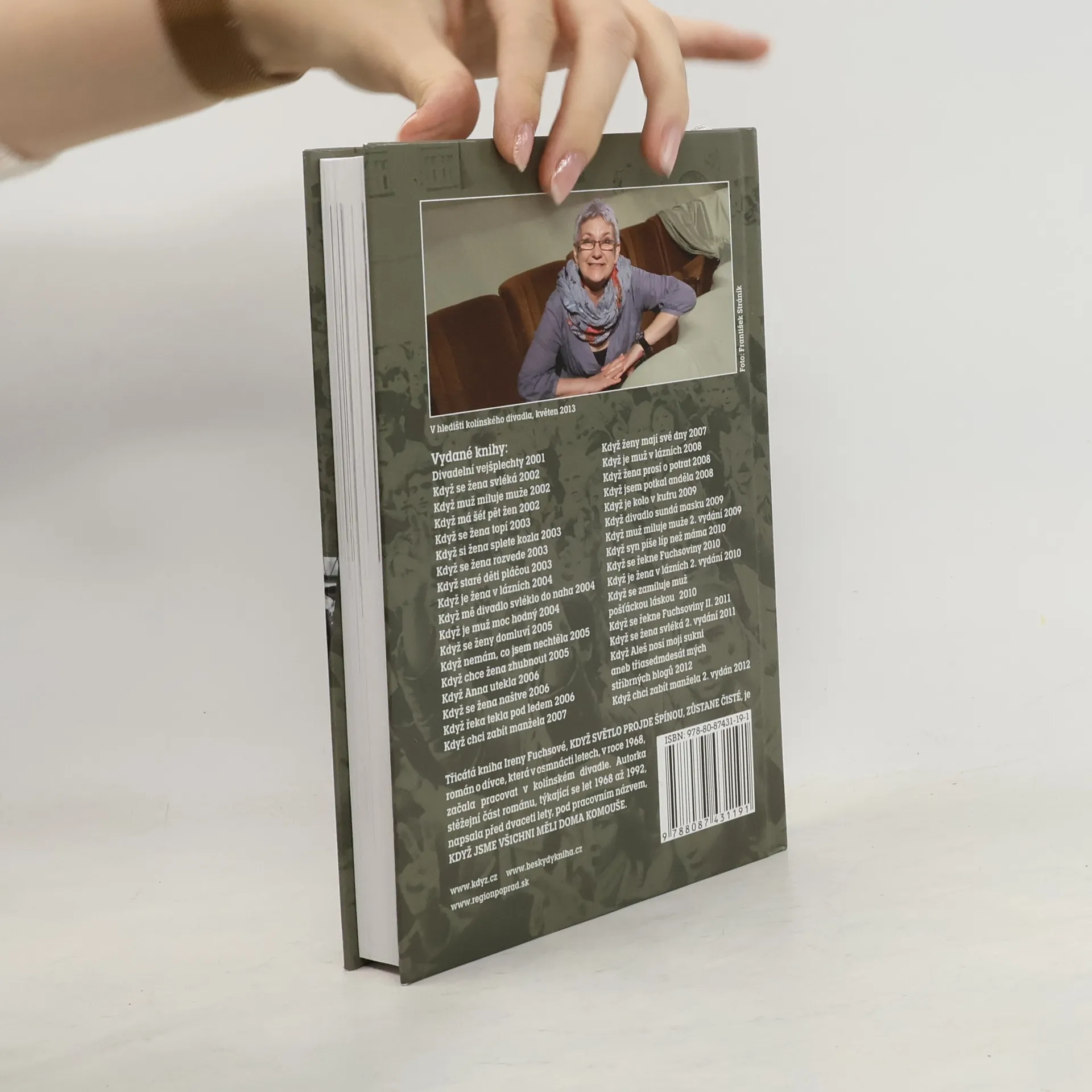 Třicátá kniha Ireny Fuchsové, KDYŽ SVĚTLO PROJDE ŠPÍNOU, ZŮSTANE ČISTÉ, je román o dívce, která v osmnácti letech, v roce 1968, začala pracovat v kolínském divadle. Autorka stěžejní část románu, týkající se let 1968 až 1992, napsala před dvaceti lety, pod pracovním názvem, KDYŽ JSME VŠICHNI MĚLI DOMA KOMOUŠE.