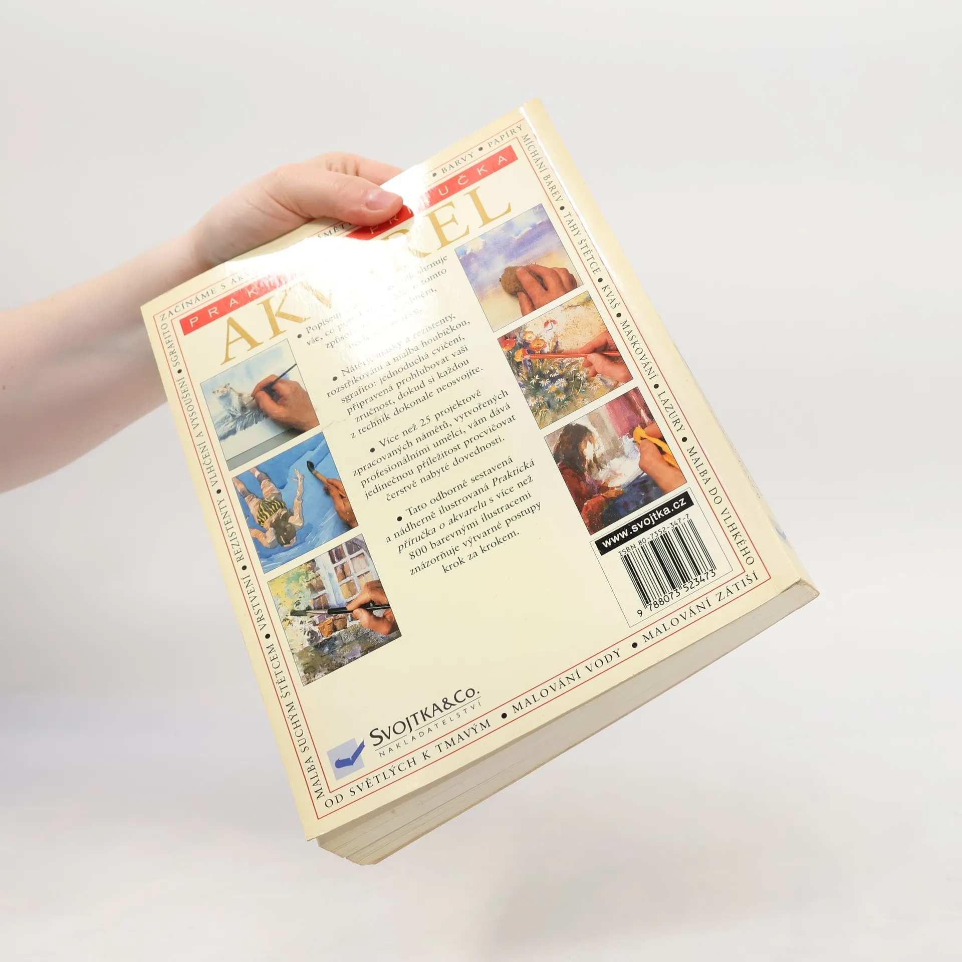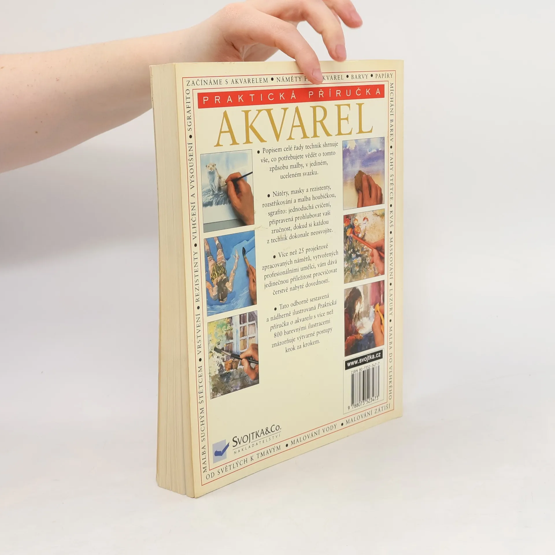 Praktická příručka popisuje nejrůznější techniky akvarelu a shrnuje vše, co potřebujete vědět o této technice, v jednom svazku. Více než 25 projektově zpracovaných námětů od profesionálních umělců vám dává možnost procvičovat si své dovednosti. Kniha je doplněná více než 800 barevnými ilustracemi znázorňujícími výtvarné postupy krok za krokem.