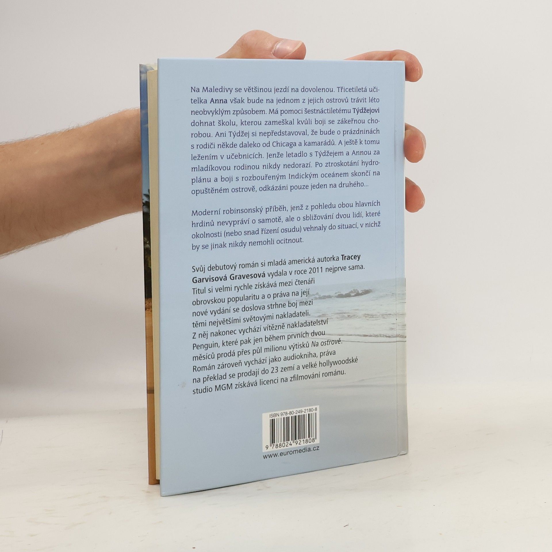 Na Maledivy se většinou jezdí na dovolenou. Třicetiletá učitelka Anna však bude na jednom z jejich ostrovů trávit léto neobvyklým způsobem. Má pomoci šestnáctiletému Týdžejovi dohnat školu, kterou zameškal kvůli boji se zákeřnou chorobou. Ani Týdžej si nepředstavoval, že bude trávit prázdniny s rodiči někde daleko od Chicaga a kamarádů. A ještě k tomu ležením v učebnicích. Jenže letadlo s Týdžejem a Annou za mladíkovou rodinou nikdy nedorazí. Po ztroskotání hydroplánu skončí na opuštěném ostrově, odkázáni jeden na druhého. Debutový román mladé americké autorky, který se okamžitě po vydání stal bestsellerem.