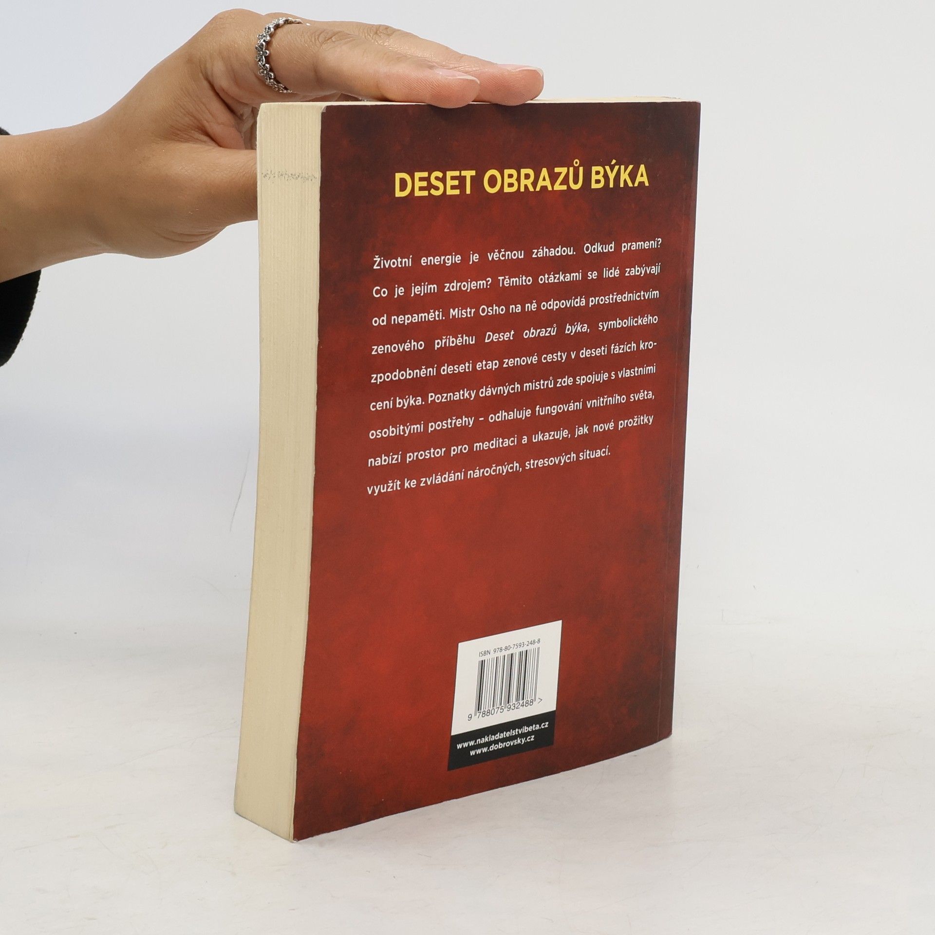 Životní energie je věčnou záhadou. Odkud pramení, co je jejím zdrojem? Těmito otázkami se lidé zabývají od nepaměti. Osho v této knize ukazuje cestu k odpovědím prostřednictvím zenového příběhu zvaného „deset obrazů býka“, jehož nejznámější verzi stvořil čchanový mistr Kchuo-an Č‘-Jüan, japonsky zvaný Kakuan Šien. Jde o symbolické zpodobnění deseti stadií zenové cesty neboli deseti úrovní zážitku osvícení v deseti fázích krocení býka. Osho nás provází celým příběhem a odhaluje nám vnitřní svět, prostor pro meditaci. Nicméně zdůrazňuje, že dosažení stavu čiré svobody není koncem cesty, protože nežijeme kdesi v ústraní, ale v dnešním rušném světě. Proto je tak důležité využívat prožitky získané při meditaci k zvládání náročných situací, jež v člověku často vyvolávají stres. Osho spojuje svým osobitým způsobem poznatky dávných mistrů se svými postřehy týkajícími se současné doby. Tato kniha inspiruje čtenáře nejen podnětným textem, ale zároveň mu nabízí možnost seznámit se s originálními ilustracemi v kruhové kompozici.