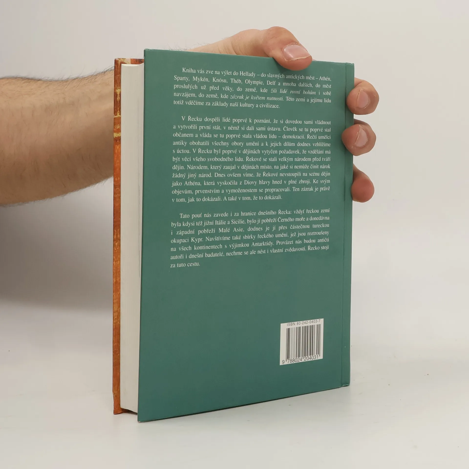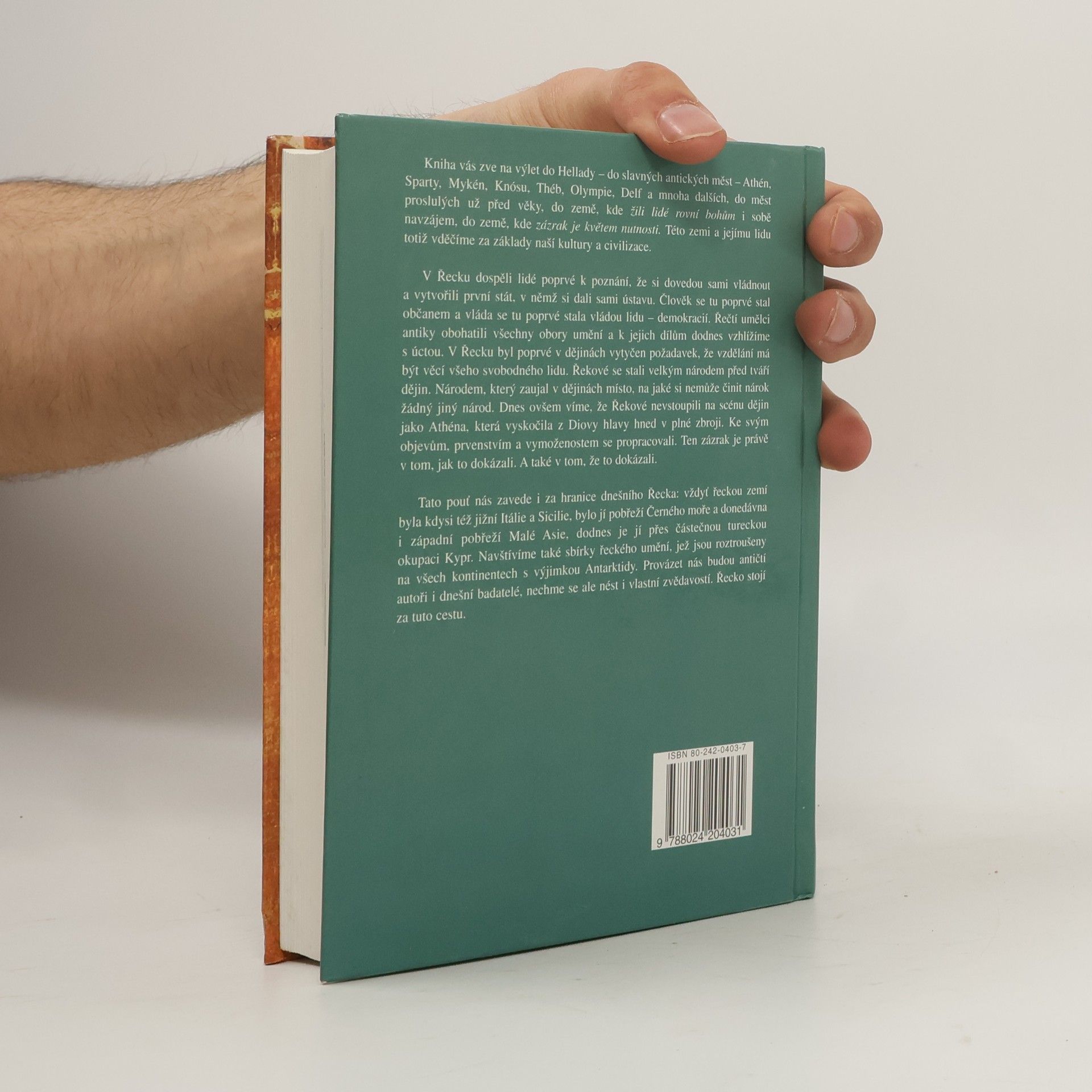 Kniha vás zve na výlet do Hellady, do slavných antických měst jako Athény, Sparta, Mykény, Knósos, Théb, Olympie a Delfy. Tyto historické lokality nám připomínají zázraky minulosti a zásadní vliv Řecka na naši kulturu a civilizaci. V Řecku lidé poprvé pochopili, jak si vládnout, a vytvořili první stát s ústavou. Zde se člověk stal občanem a vláda se stala vládou lidu – demokracií. Řečtí umělci antiky obohatili všechny obory umění, jejichž díla dodnes obdivujeme. Řekové jako národ se stali významnou součástí historie, ačkoli jejich úspěchy byly výsledkem tvrdé práce a odhodlání, nikoli okamžitého zjevení. Kniha nás zavede i za hranice dnešního Řecka, které zahrnovalo jižní Itálii, Sicílii, pobřeží Černého moře a západní pobřeží Malé Asie, a dodnes se dotýká Kypru. Navštívíme sbírky řeckého umění na všech kontinentech kromě Antarktidy. Cestou nás provázejí antičtí autoři i současní badatelé, ale důležitá je i naše vlastní zvědavost. Řecko rozhodně stojí za tuto cestu.
